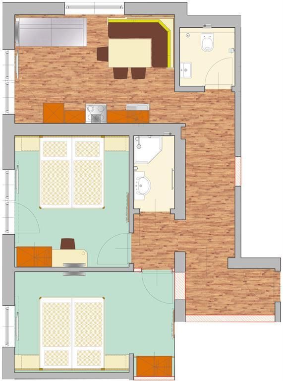 Familiensuite Hochkönig für bis zu 4 Personen, 45-55 m2, 2 Schlafzimmer , Wohnraum mit komplett Ausgestatteter Küche mit Backofen Mikrowelle Induktionsherd,, Kühlschrank, Geschirr, Gläser usw... Dusche/WC, Balkon und 32° Flachbild -TV.