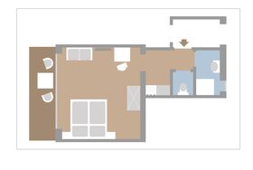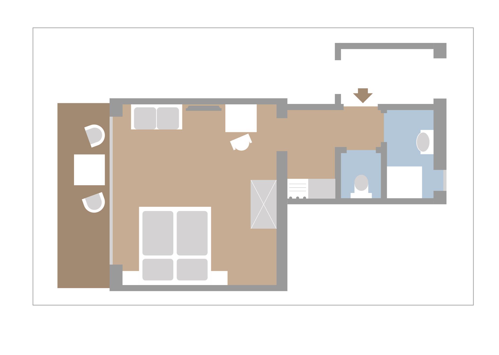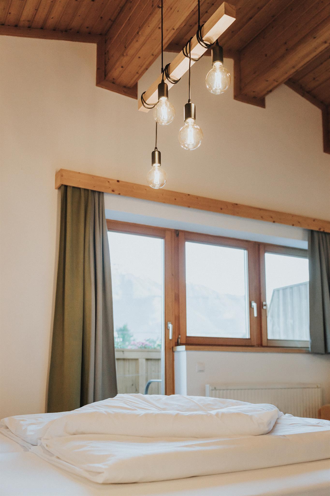Panorma-Doppelzimmer-Paarseen - 35m² Wohn/Schlafraum mit großem Doppelbett, gemütliche Sitzecke, kleine Tee-Küche, Dusche/WC getrennt, Panorama-Südbalkon und 32°Flat TV und Free W-lan.