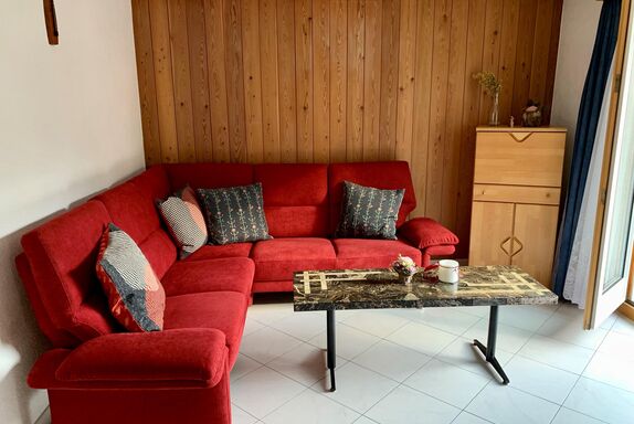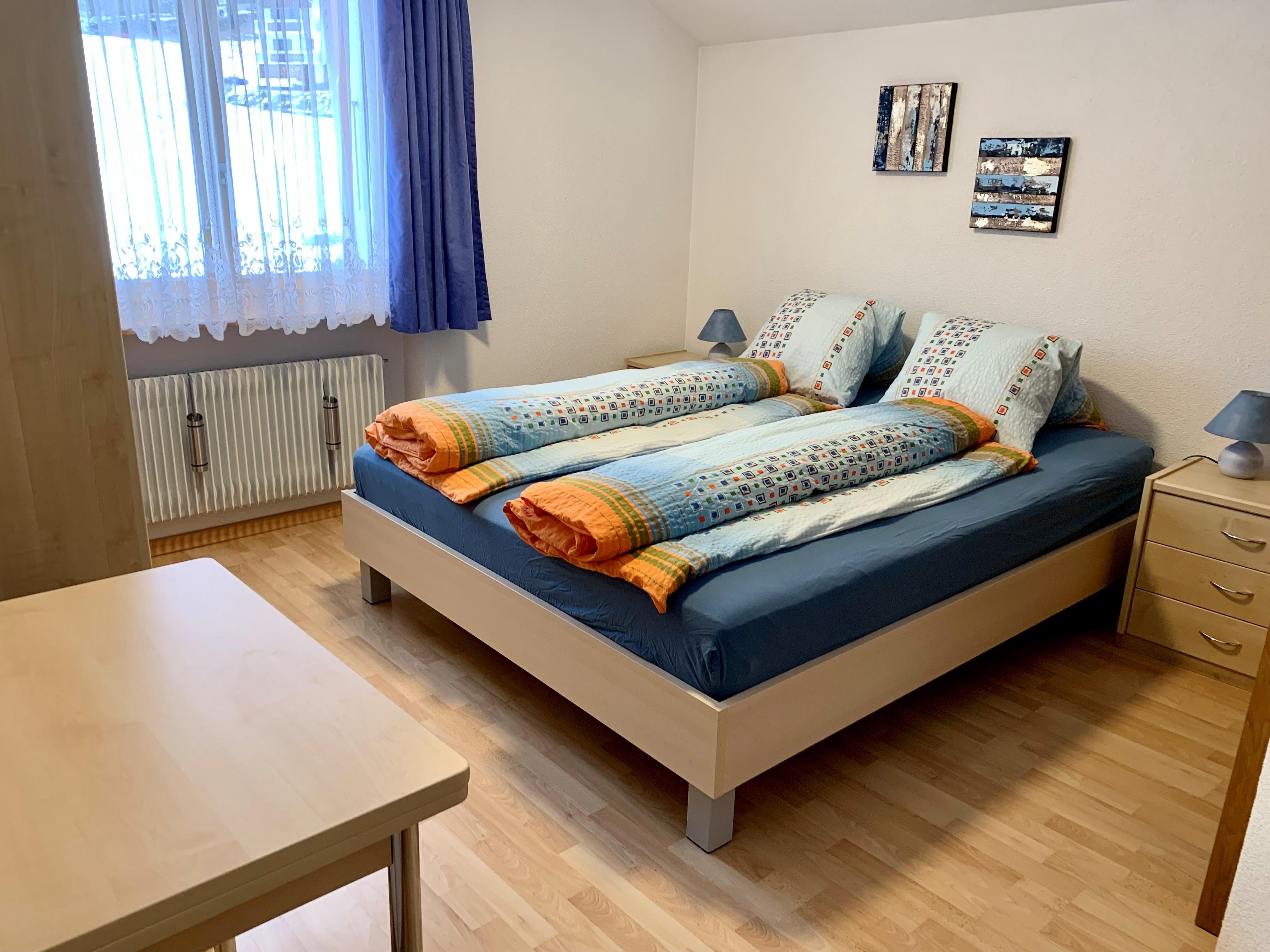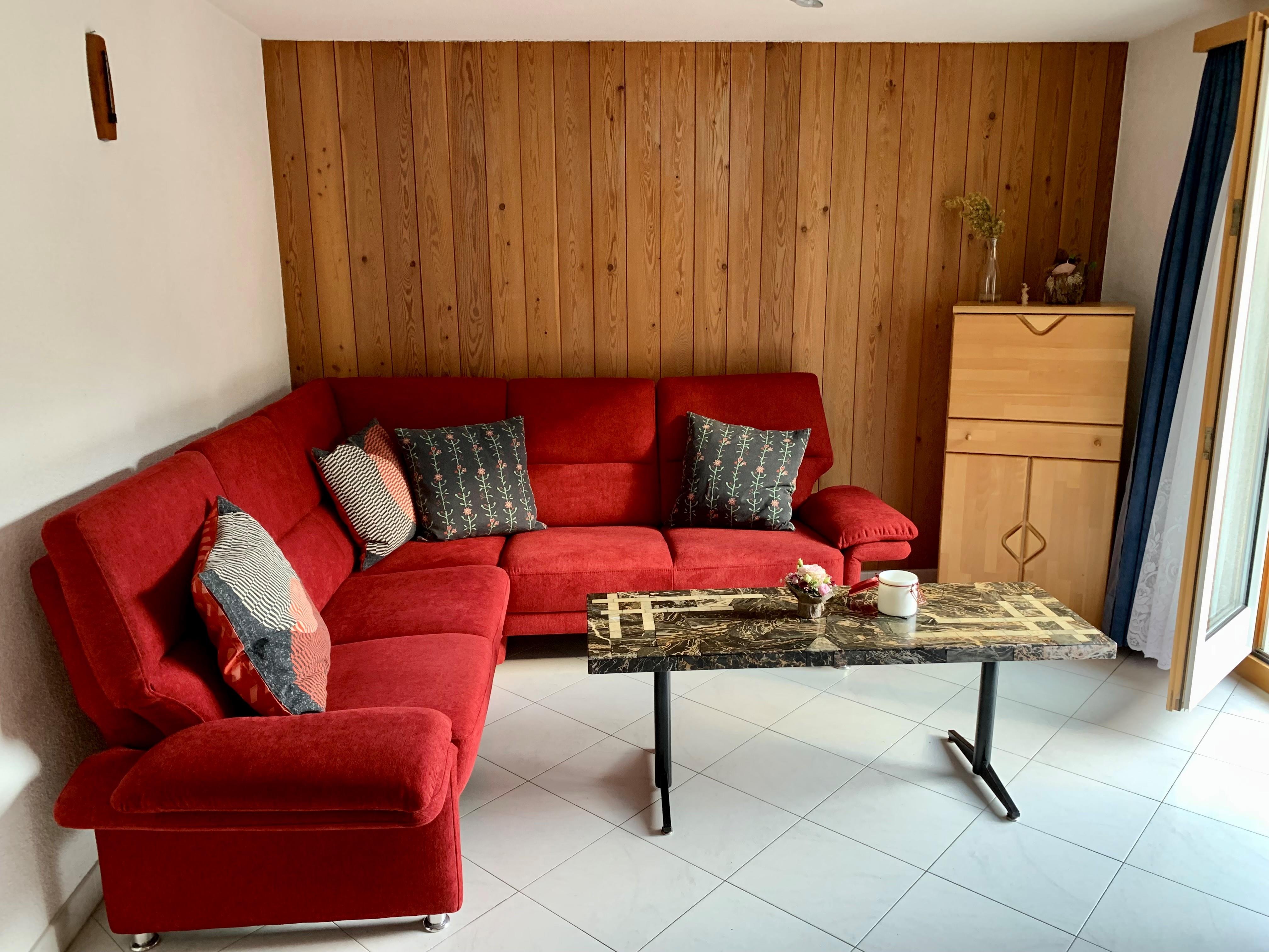 Gemütlich ausgestattete Ferienwohnung mit 1 Doppelzimmer mit Waschbecken, 1 Doppelzimmer mit Dusche/WC, 1 Zimmer mit 1 Einzelbett (80x190) und Waschbecken, separates Bad/Dusche/WC. 1 Balkon auf der Südseite mit einer wunderschönen Aussicht auf das Dorf und die Berge. Geräumiger Wohnraum kombiniert mit gut ausgestatteter Küche (Geschirrspüler, Mikrowelle, Toaster, Wasserkocher, Kaffeemaschine). Kabel-TV und kostenloser Internetanschluss. Nichtraucherwohnung. Schuhtrockner. Privatparkplatz. Grillplatz hinter dem Hause.