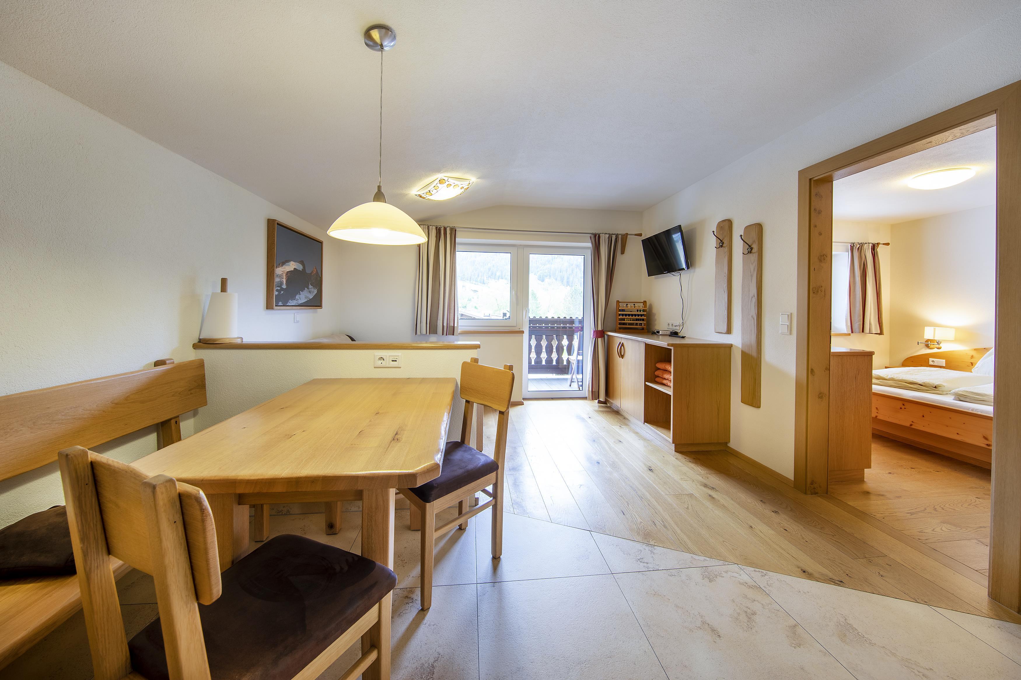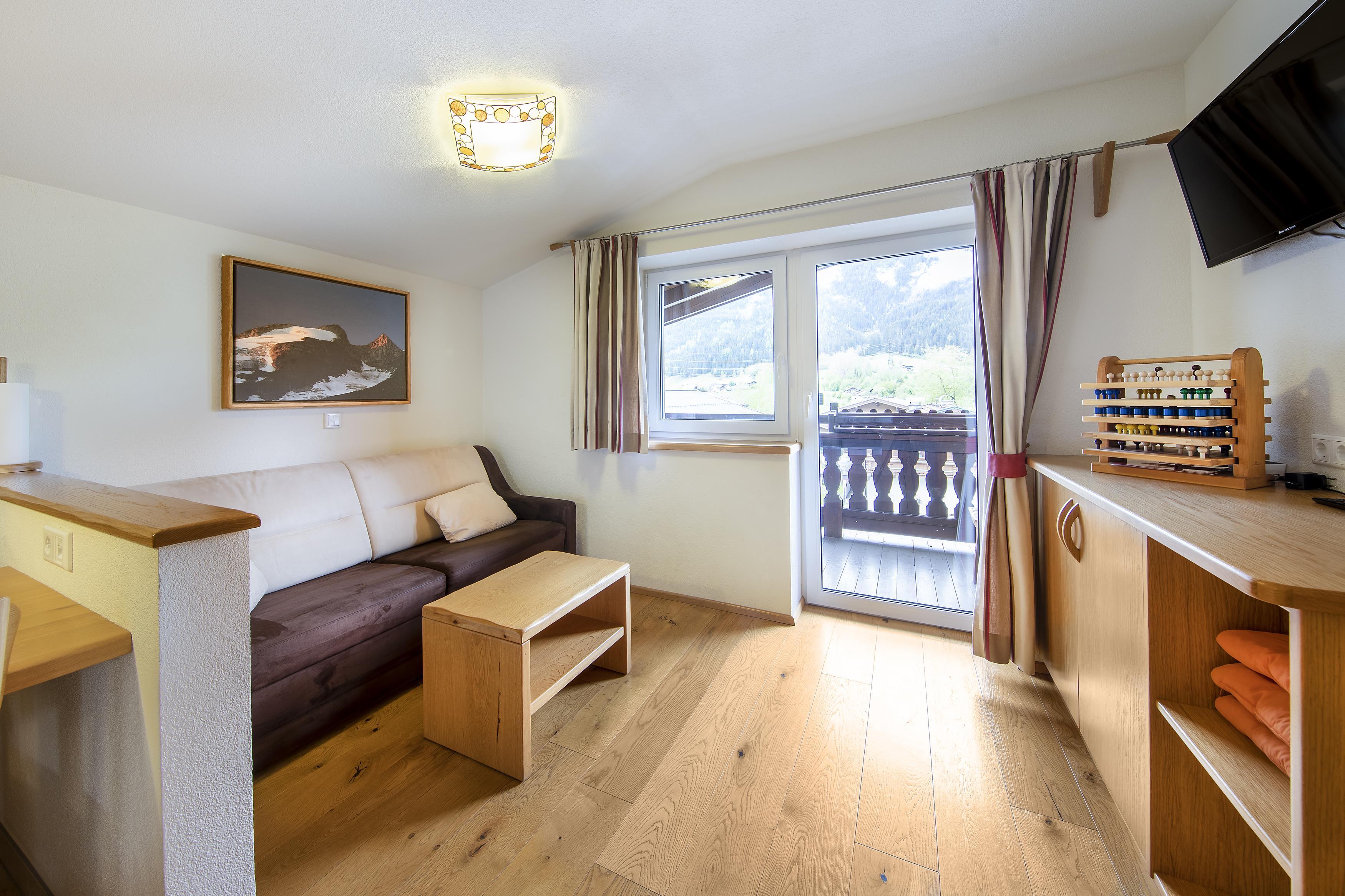 Typ Christina für 2-4 Personen, 36 m², Wohnzimmer (Ausziehcouch) und Küche mit Essbereich, 1 Schlafzimmer, Dusche mit WC, auch für Eltern mit 2 Kinder geeignet Ausstattung: Bettwäsche,Handtücher,Kabel-TV,DVD,Fön,Radio,WLan,Safe und Balkon