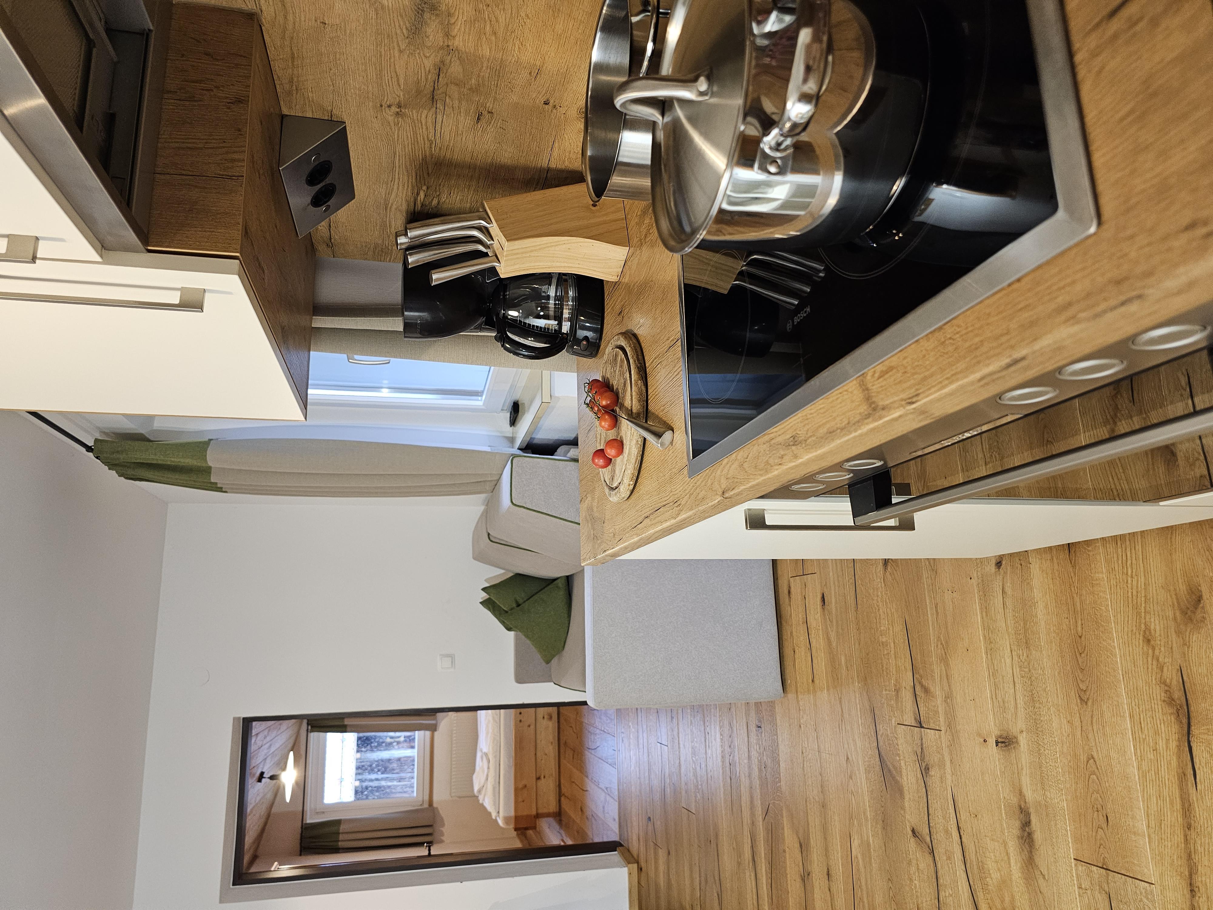 • 1 Wohn- & Essbereich mit voll ausgestatteter Küche (inkl. Kaffeemaschine, Geschirr, Toaster und Geschirrspüler), Schlafcouch und Sitzecke