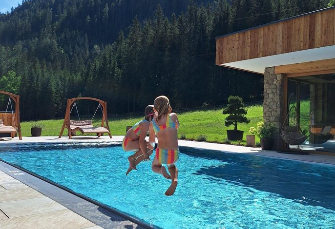 Wellness & Entspannung Unser neuer Wellnessbereich mit zwei Saunen, beheiztem Outdoor-Pool und einem Ruheraum lädt zum Relaxen ein.