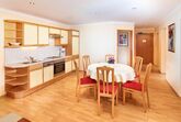 1 Wohnraum mit doppelbettig ausziehbarer Couch, komplett eingerichtete Ferienküche, Flachbildschirm, W-Lan, Safe, Telefon,