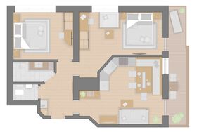 2 getrennte Schlafzimmer, ein Ausziehsofa, Dusche, WC getrennt, Balkon mit Blick ins Tal ausgestattet.