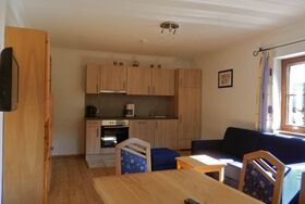 Ein gemütliches komfortables Apartment mit Vorraum, Dusche, separatem WC, ein Schlafzimmer mit einem Doppelbett und einem Einzelbett , komplett ausgestattete Wohnküche mit Essecke und zusätzlicher Couch ( welche als Doppelausziehbett geeignet ist) sowie Flat-TV. Ausreichend Platz.