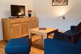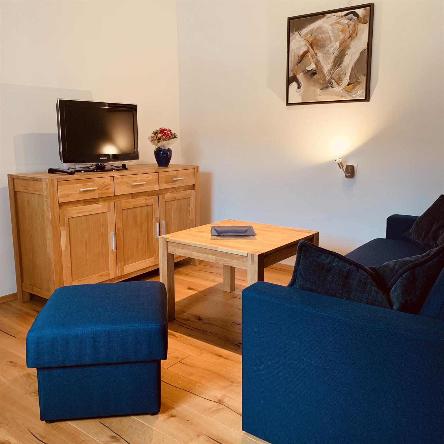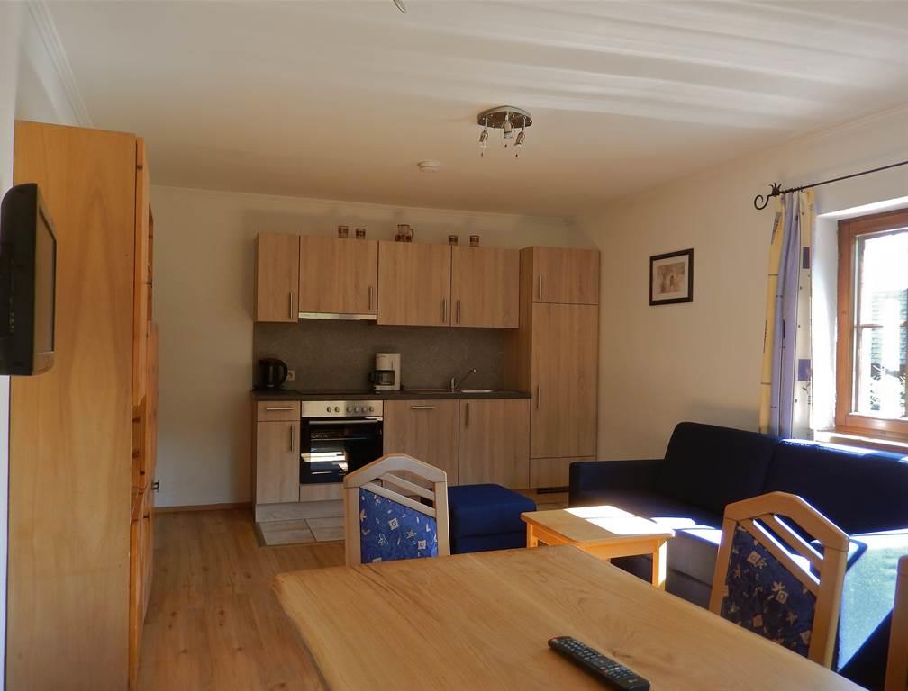 Aufgeteilt in  Wohnküche mit gemütlicher Essecke und zusätzlicher Sitzgelegenheit-Couch sowie einem FLAT-TV,  Vorraum, Dusche, WC, und ein Schlafzimmer für 2 Personen.  Die Couch in der Wohnküche lässt sich auch zu einem normalen Doppelausziehbett umfunktionieren.