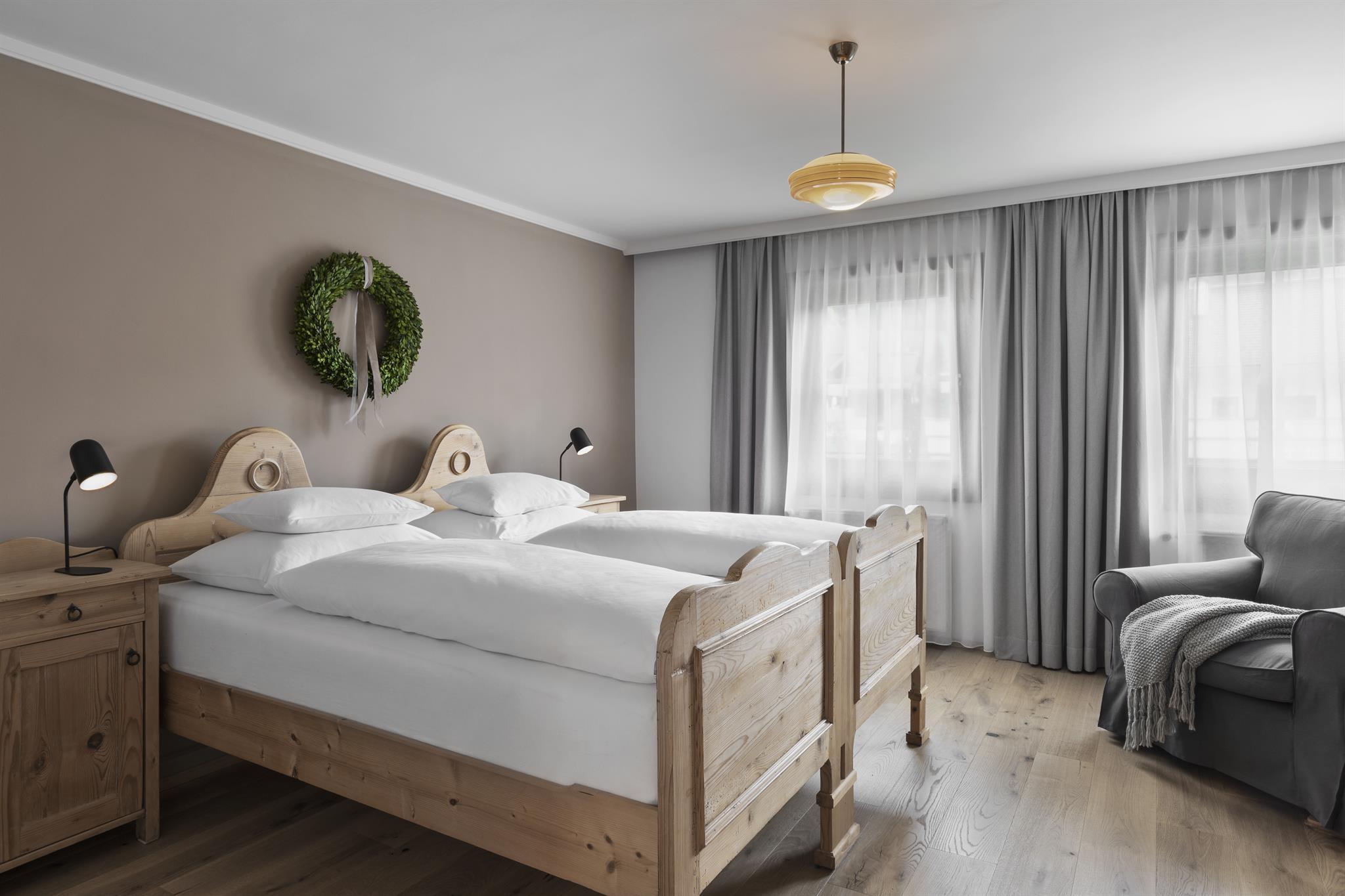 Elf individuell eingerichtete Zimmer im zeitlosen Landhausstil verleihen dem Hotel eine besondere Note. Die Mischung aus alten Bauernmöbeln in Kombination mit moderner Gemütlichkeit haben hier ein kleines Hideaway für Entspannung und Urlaub geschaffen.