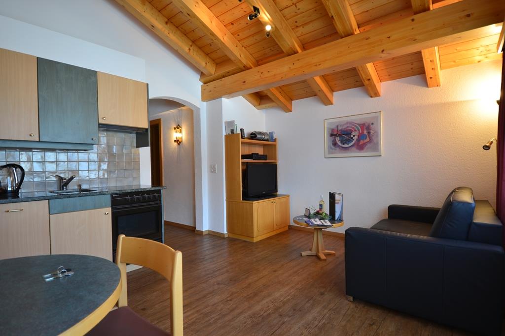 Moderne Ferienwohnung (Dachwohnung 40 m2 ), geeignet für 2 Erwachsene und 1 Kind bis 14 Jahren, bestehend aus einem geräumigen Wohnzimmer mit Telefon (Direktwahl), Radio/CD-Player, TV-Flachbildschirm, Video, Küche mit Glaskeramik-Kochfeld, Kühlschrank, Kaffeemaschine (Delizio-Kapseln oder Filter), Geschirrspüler, Mikrowelle, Käsefondue-Set, Esstisch, LederSofa, separatem Schlafzimmer, Bad/Dusche, WC, Balkon zur Südseite mit Gartenmöbeln und herrlicher Aussicht auf die höchsten Berge der Schweiz.
