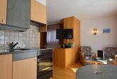 Moderne Studio-Ferienwohnung (26 m2 ) bestehend aus einem geräumigen Wohn-/Schlafzimmer mit Telefon (Direktwahl), Radio/CD-Player, schwenkbarem TV-Flachbildschirm, Video, Küche mit Glaskeramik-Kochfeld, Kühlschrank, Kaffeemaschine (Delizio-Kapseln oder Filter), Geschirrspüler, Mikrowelle, Käsefondue-Set, Esstisch, Dusche, WC, Terrasse mit Gartenmöbeln und angrenzender Liegewiese. Die ****-Wohnung mit einer modernen und zeitgemässen Infrastruktur ist geräumig und entspricht einem hohen Qualitätsstandard.