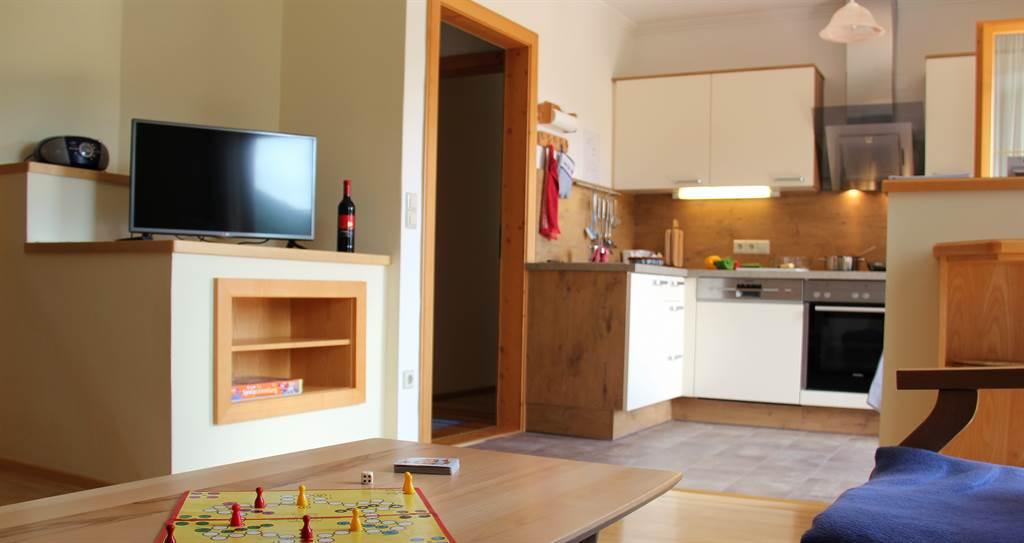 Unsere Wohnung Südblick hat 2 Schlafzimmer und ist mit Vorraum, Küche mit Geschirrspüler & Mikrowelle,Kühlschrank mit Gefrierfach ,Wohnzimmer mit Couch und Essecke mit Flachbildschirm ausgestattet, 2 WC und 1 Dusche mit fixem Föhn sind getrennt, und es gibt einen großen Südbalkon.