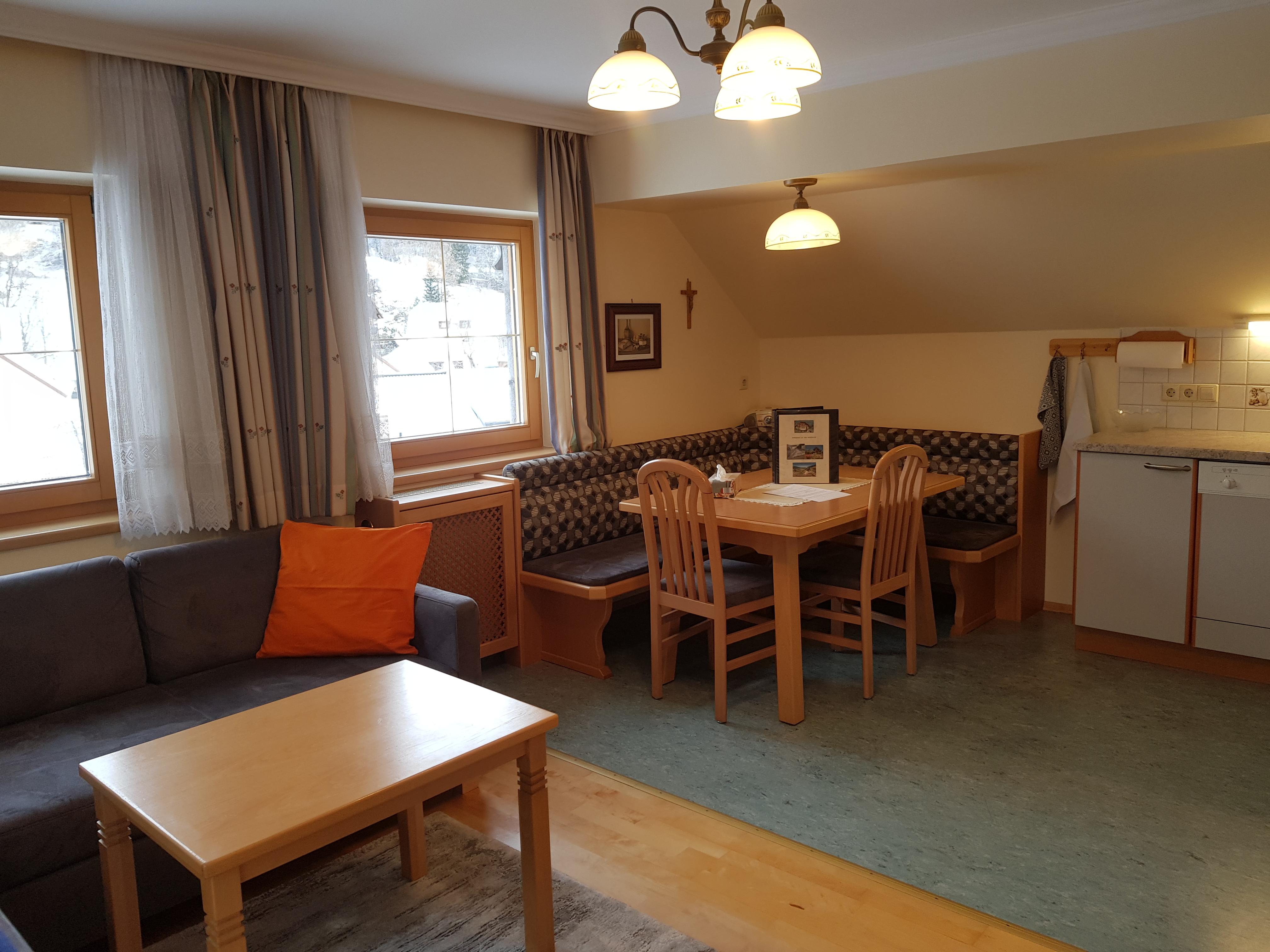 Wohnung Grosseck hat 3 Schlafzimmer ( 2 DZ und 1 Zimmer mit 2 getrennten Betten)und ist mit großer Wohnküche mit Essecke und Couch, Geschirrspüler ,Mikrowelle, Kühlschrank mit Gefrierfach;Flachbildschirm, CD-Radio, 2 Duschen mit fixem Föhn, 2 WC, Vorraum und Balkon ausgestattet.