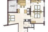 • Vollwertige Küche (Ceran-Kochfeld, Geschirrspüler, Teller, Besteck, usw.)