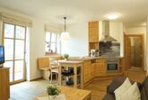 • Vollwertige Kücheneinrichtung (Ceran-Kochfeld, Geschirrspüler, Teller, Besteck, usw.)