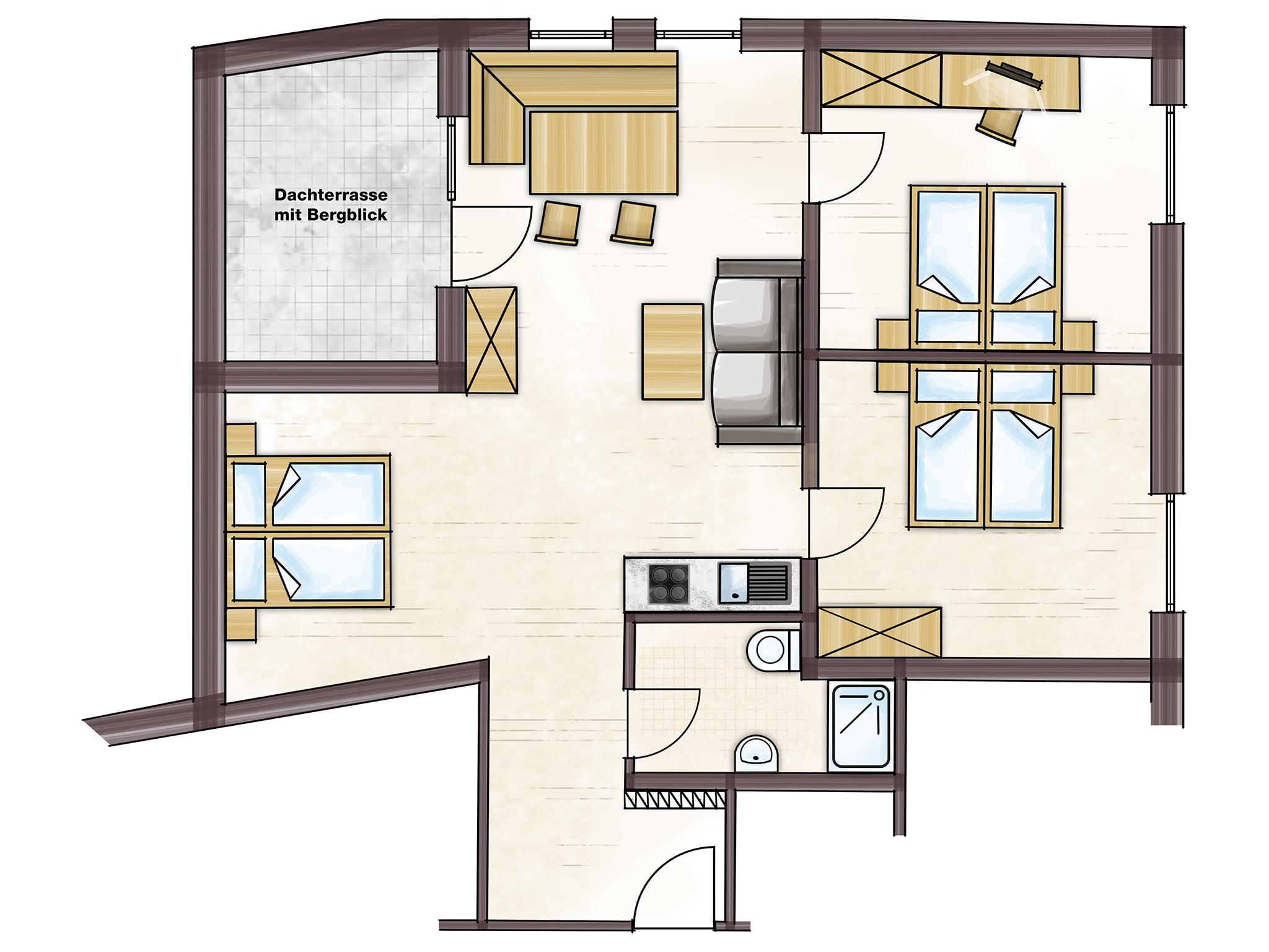 • Dachterrasse mit Bergblick und Sitzgelegenheit