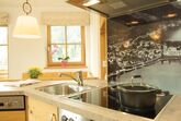 • Vollwertige Kücheneinrichtung (Ceran-Kochfeld, Geschirrspüler, Teller, Besteck, usw.)