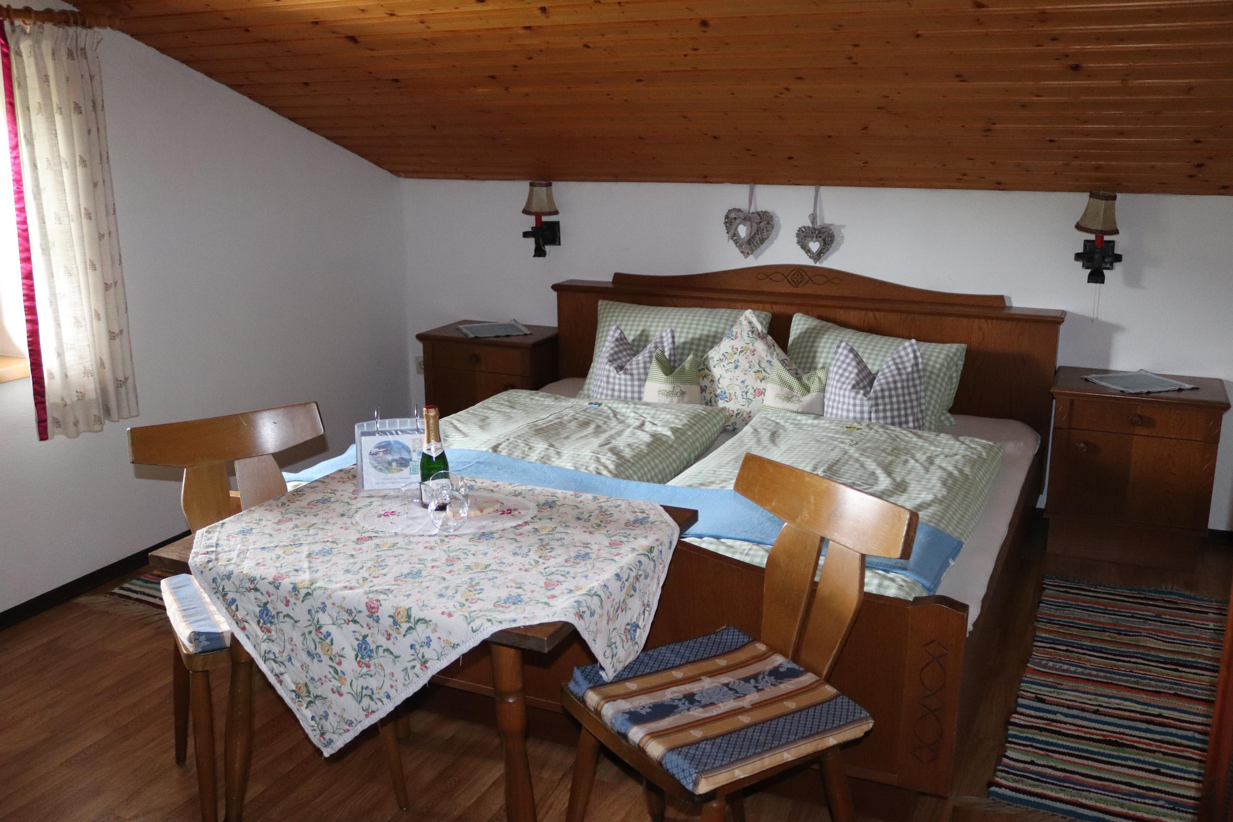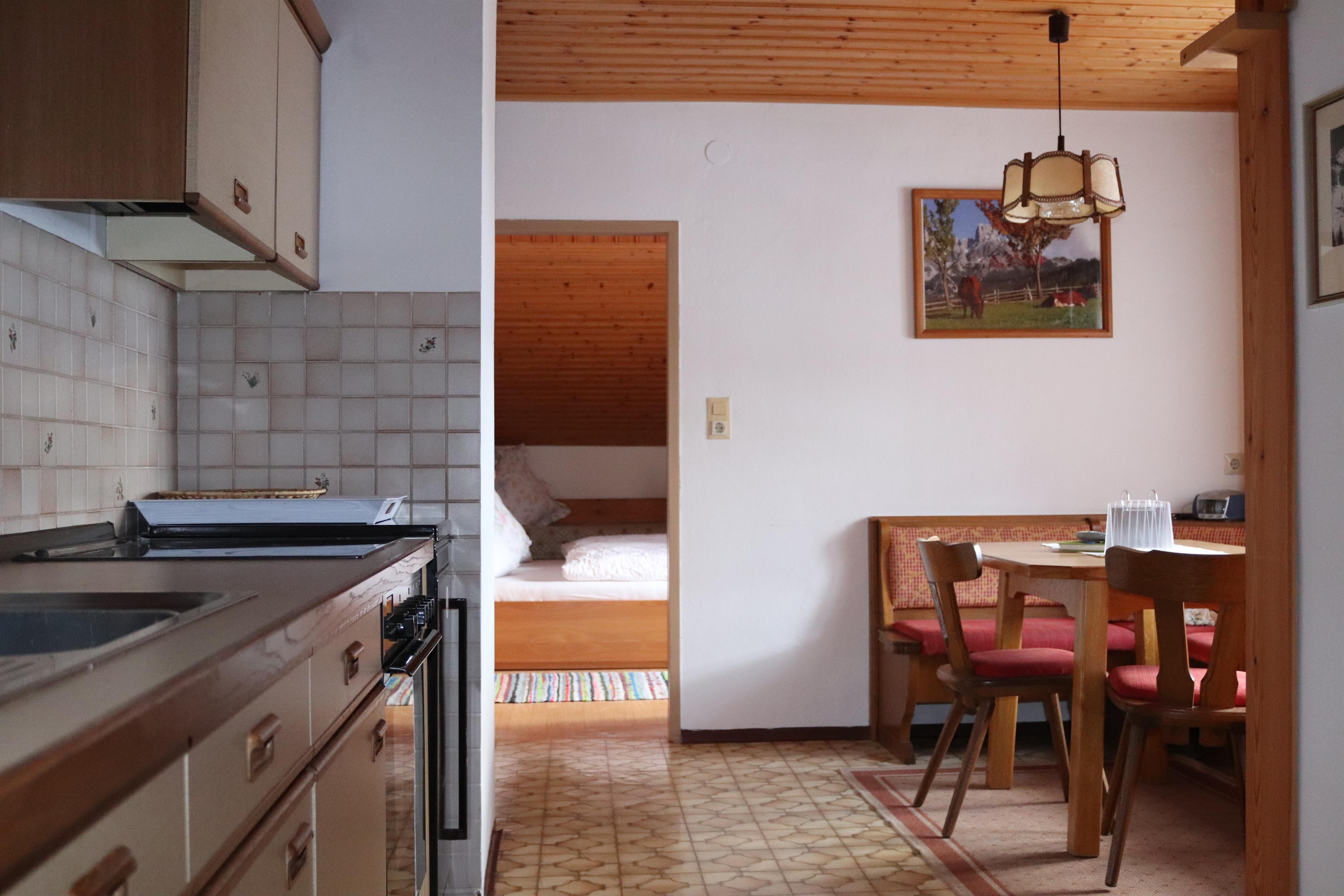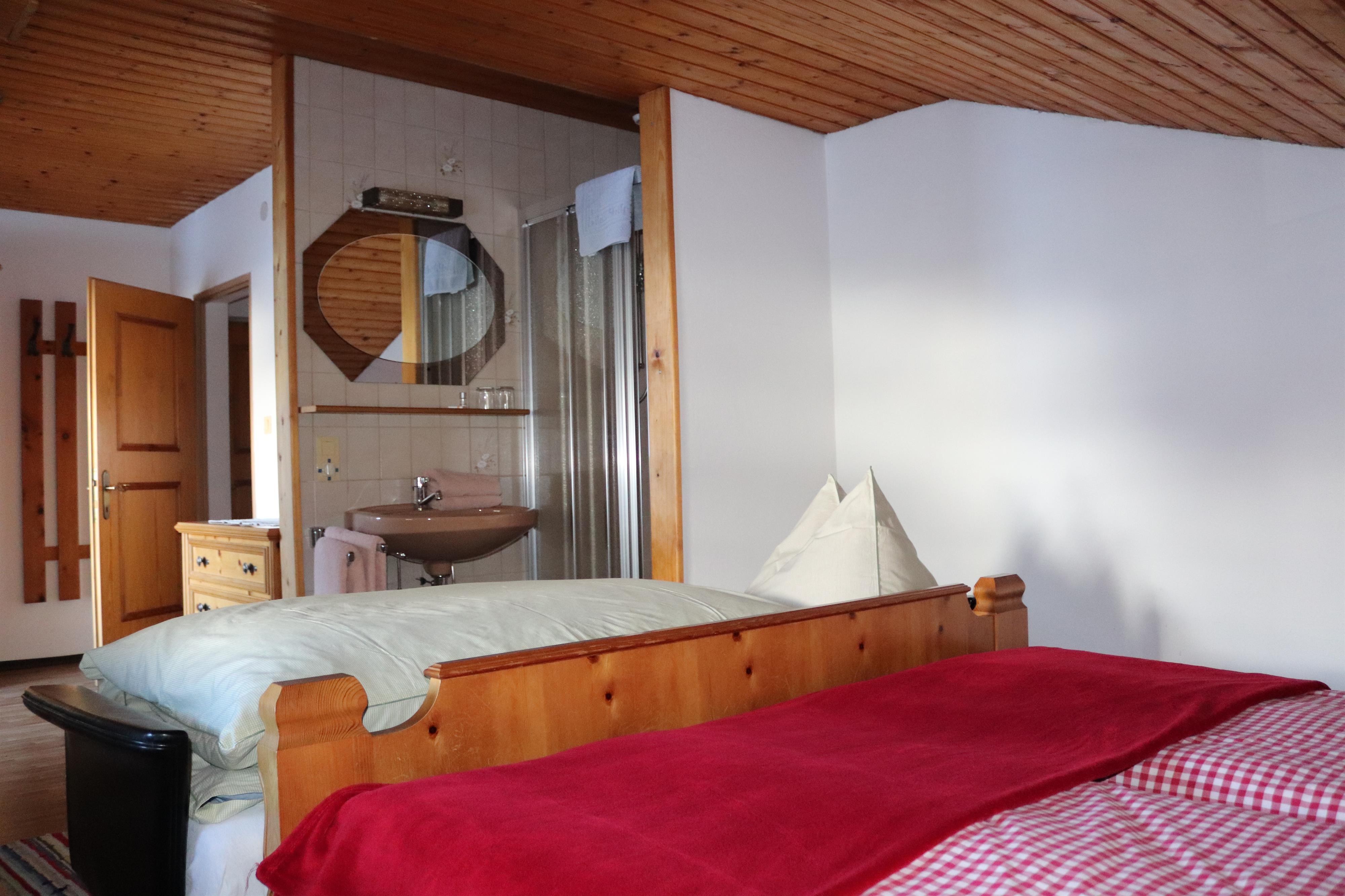Unsere Ferienwohnung für 4 Personen in der Größe von 35m² besteht aus einem Schlafzimmer, einer Küche mit Sitzecke, Sat-TV + CD-Radio und einer Dusche/WC. Frühstück auf Wunsch ist möglich. Weiters stehen 2 Doppelzimmer mit Dusche zur Verfügung.