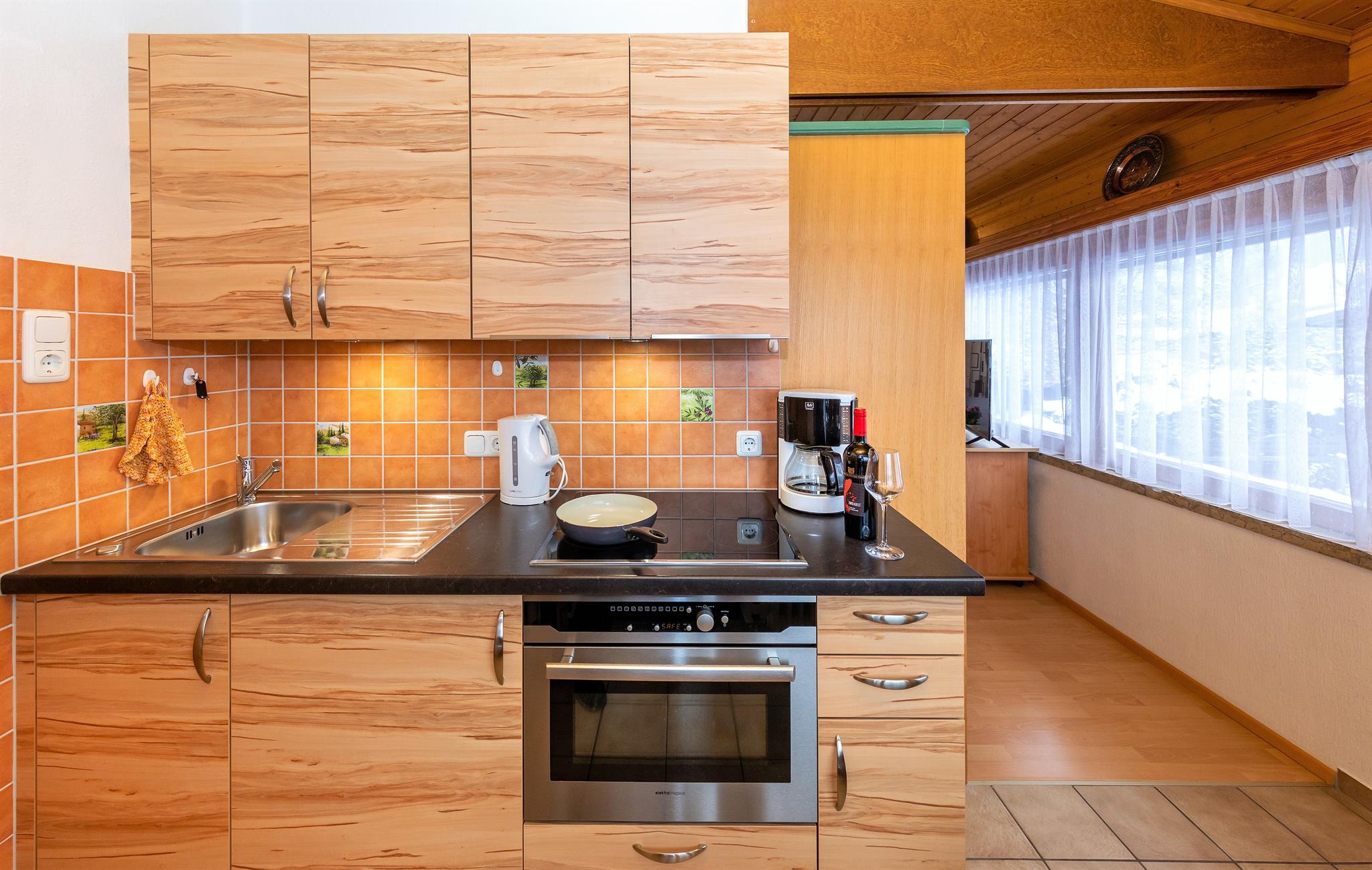 • Kochzeile mit kleiner Essecke (Kühlschrank, Elektroherd, Mikrowelle, Wasserkocher, Kaffeemaschine, etc.)