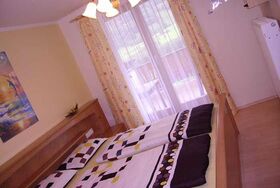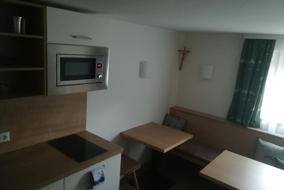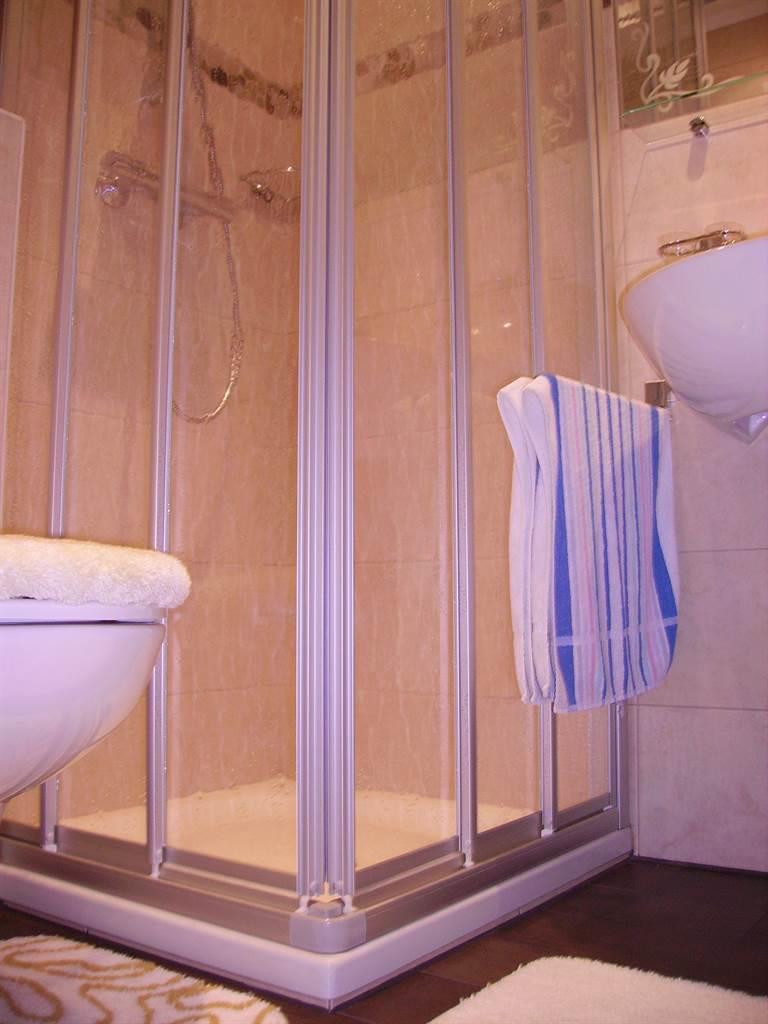 Doppelzimmer mit Dusche und WC, sowie einer kleinen Terrasse. Außerdem steht meinen Gästen ein Aufenthaltsraum mit Kühlschrank, Mikrowelle, Geschirrspüler und Herdplatte zur Verfügung.