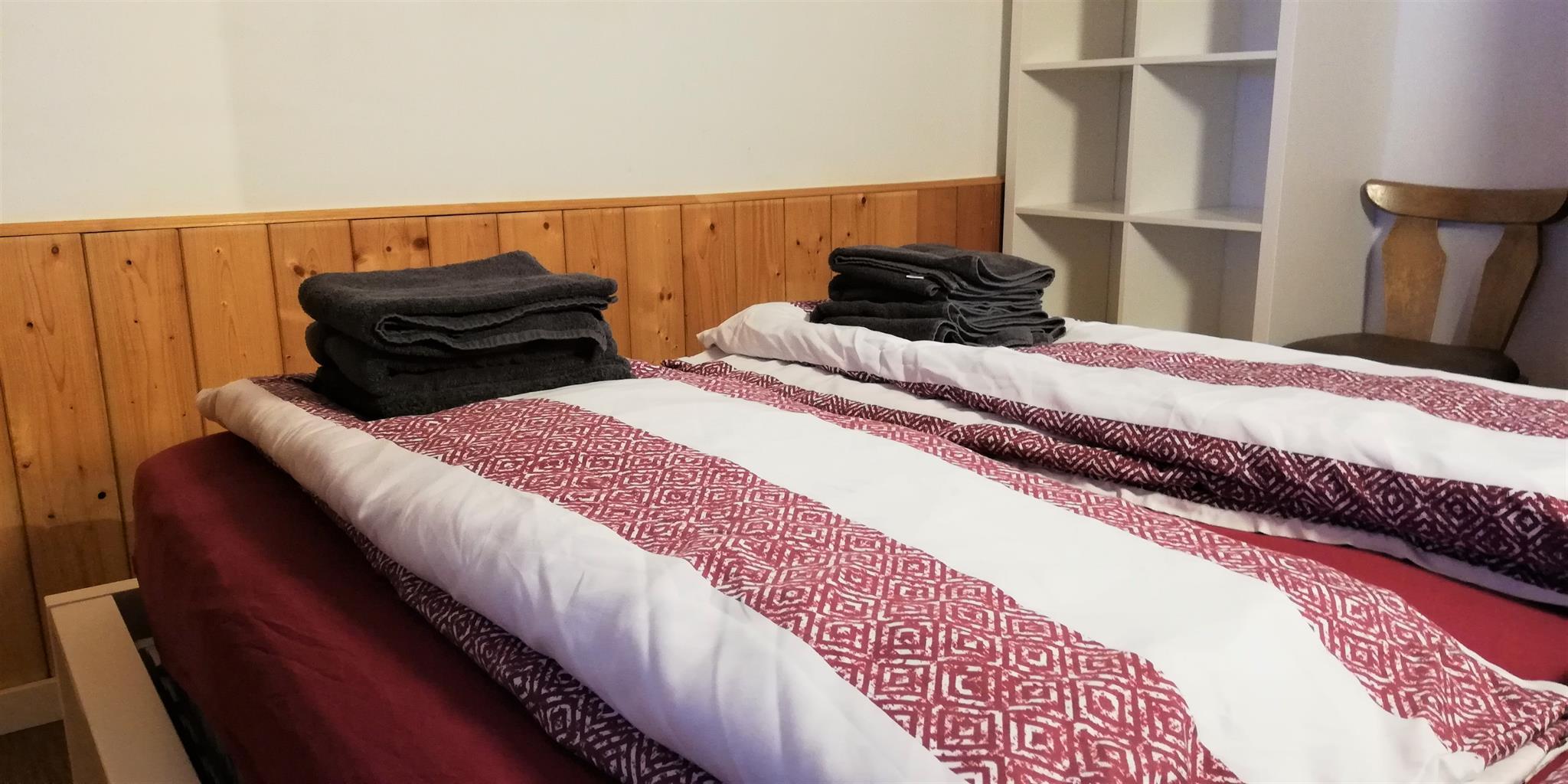 Jede Unterkunft verfügt über 1 Doppelzimmer mit der Breite von 1,60m und ein Zweibettimmer (Verbindungszimmer), ein Wohnzimmer mit Eckbank, eine voll ausgestattete Küche und ein eigenes Bad mit einer Dusche. Eine Mikrowelle, ein Kühlschrank, ein Backofen, ein Wasserkocher und eine Kaffeemaschine sind ebenfalls vorhanden. Kein TV vorhanden!!