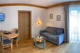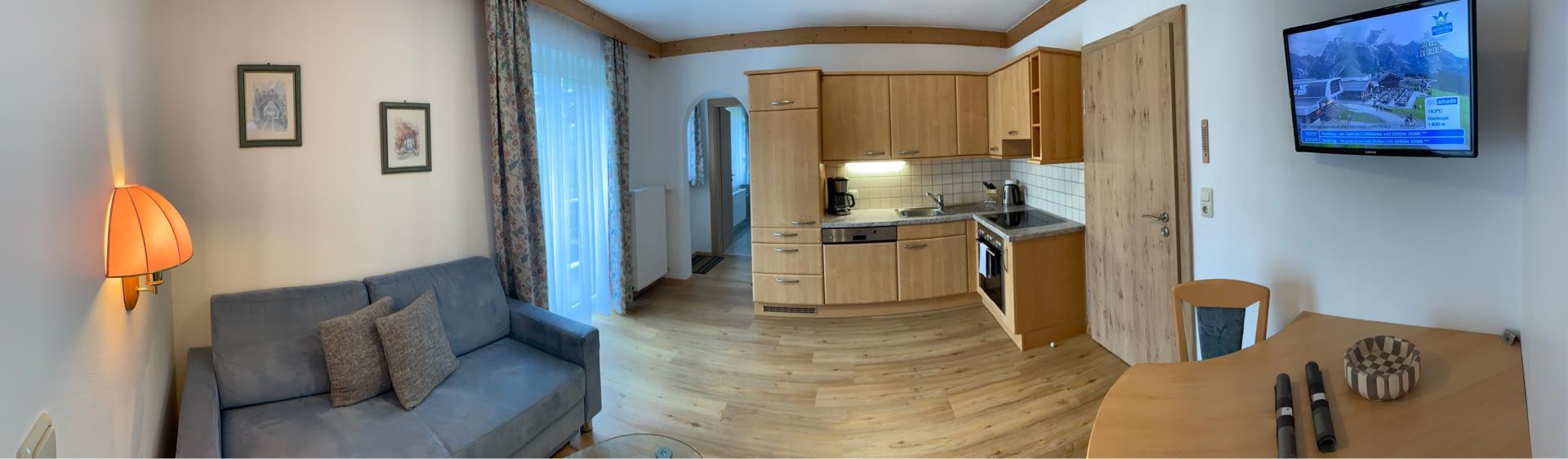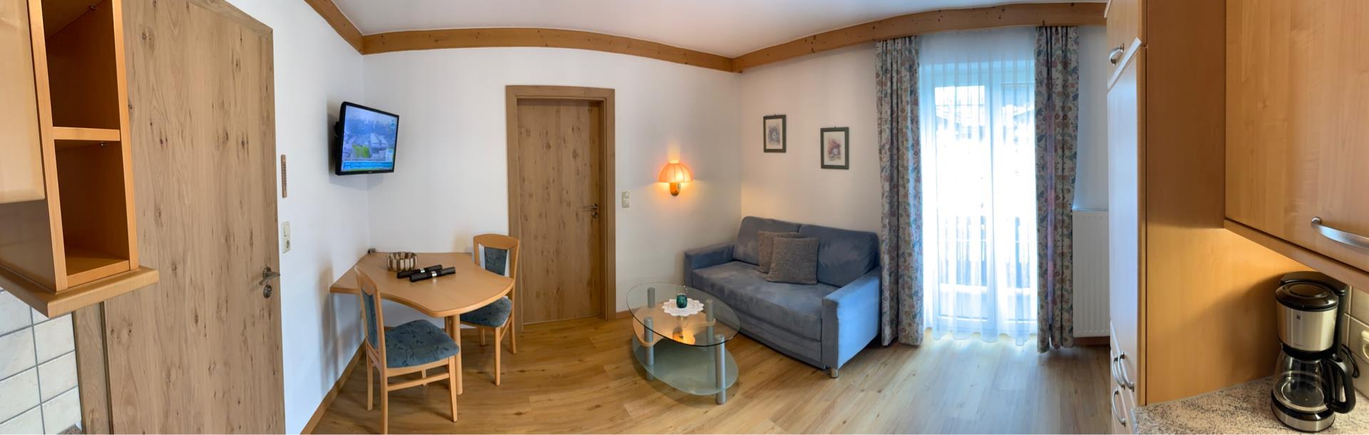 37m² grosse Ferienwohnung mit einem Schlafzimmer, einem Wohnraum mit Küchenzeile mit Geschirrspüler, Dusche/WC, Kabel-TV, Gratis WiFi und Balkon.
