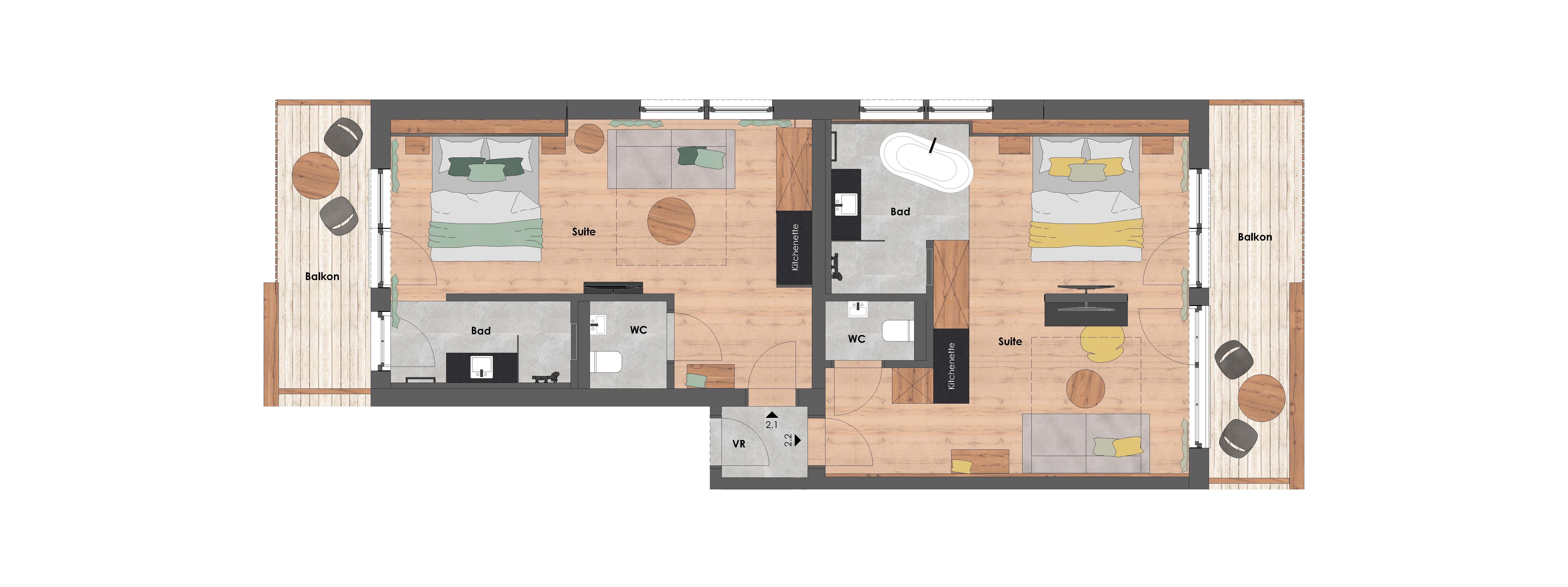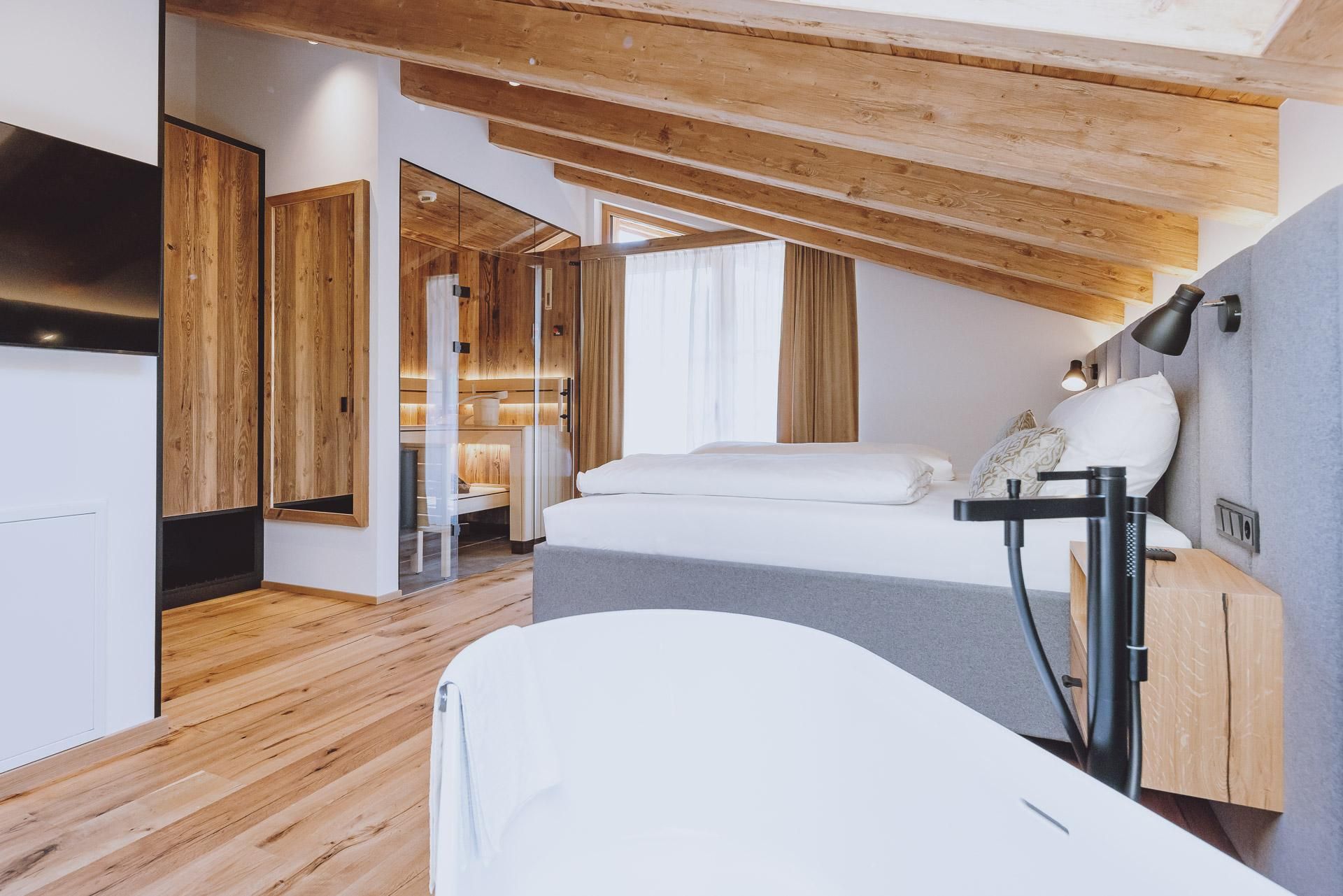 Sie benötigen mehr Platz? Die Juniorsuite Berg kann mit einer Juniorsuite See zu einer großen 65 m² Suite verbunden werden.