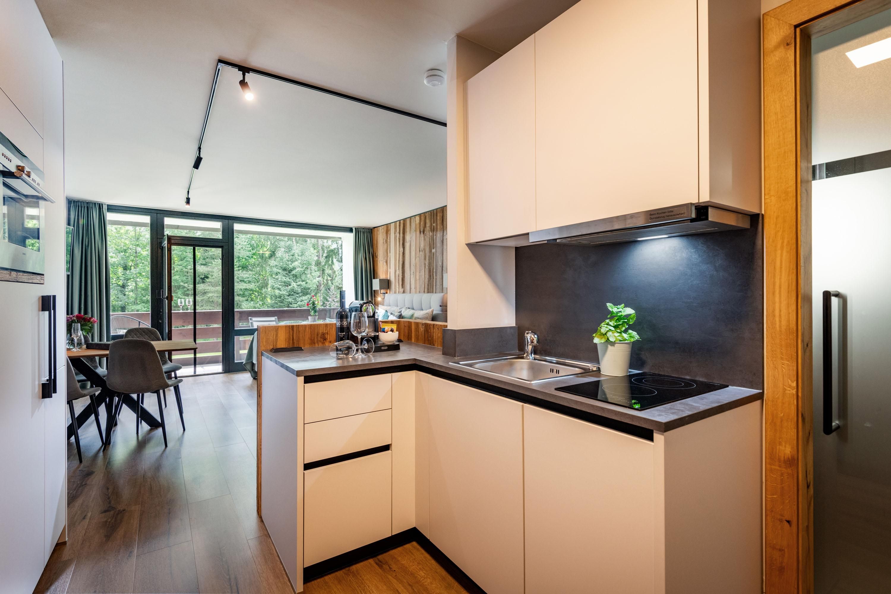 • Voll ausgestattete Küche mit Herd, Backofen,Mikrowelle, Kühlschrank und Geschirrspüler