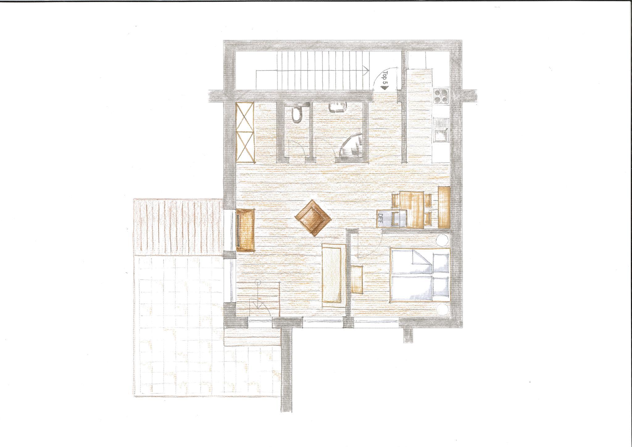 Das neue Penthouse verfügt über ein getrenntes Schlafzimmer, Wohnraum, Küchenzeile, Badezimmer, getrenntes WC und eine toll Dachterrasse mit Blick über das gesamte Tal.