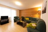 Superior Apartment (80m2) mit 2 Schlafzimmern im 1. Stock - Küche mit Geschirrspüler und Essecke - Wohnbereich mit Sofa, Satelliten-TV und Radio - Bad mit WC und Dusche - Balkon mit Bergblick