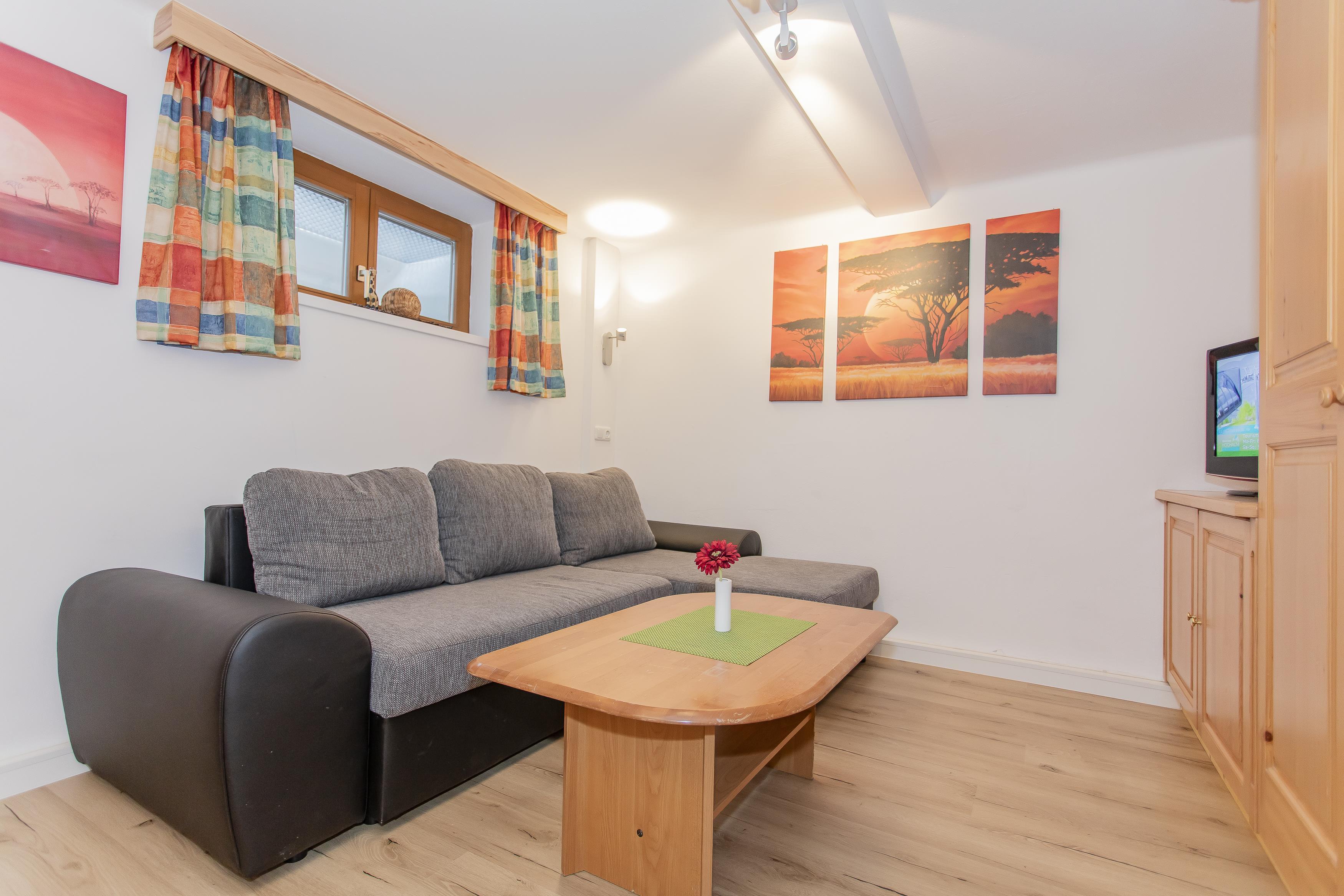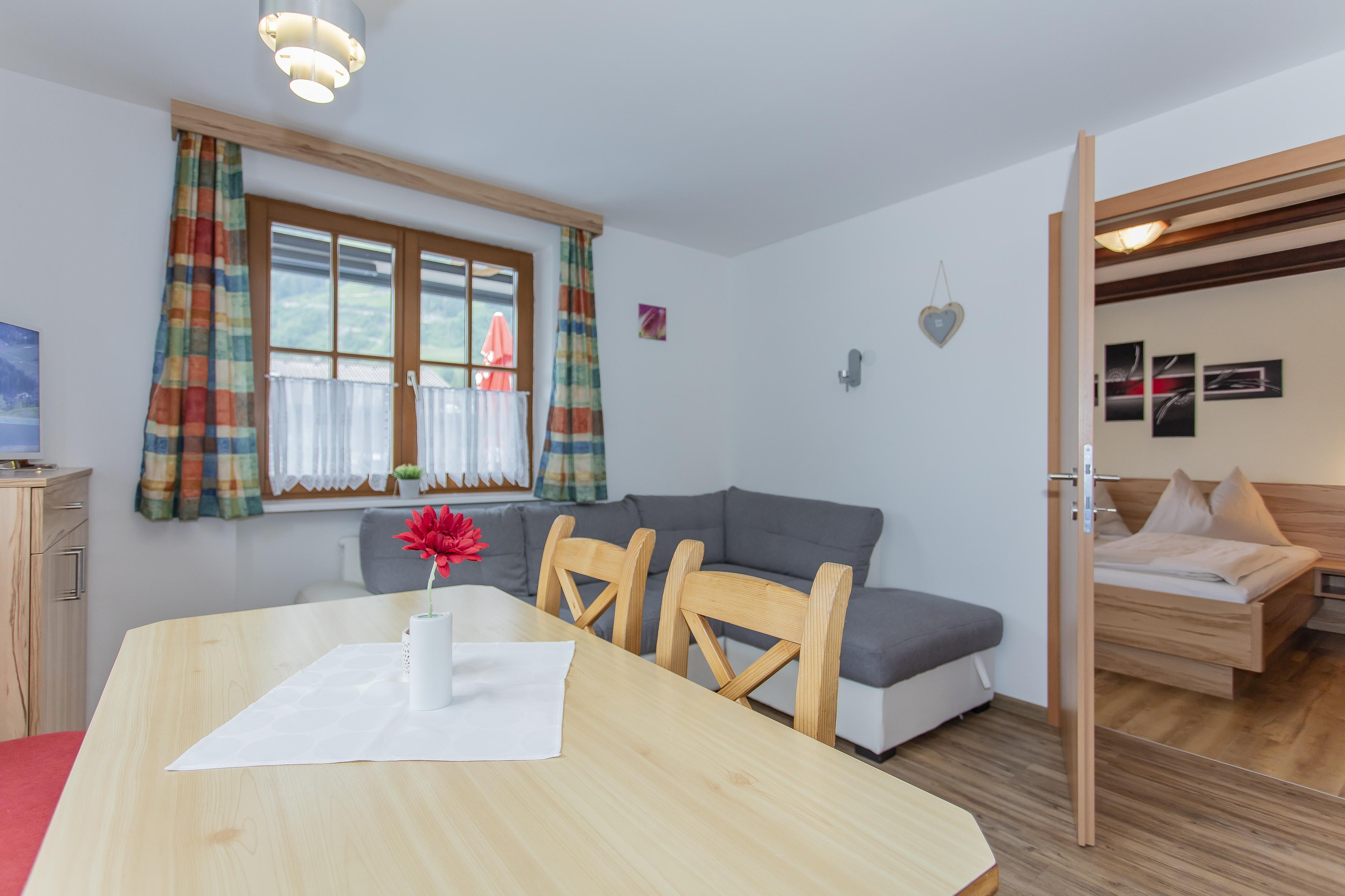2 Schlafzimmer, 1 Wohnschlafraum, 1 Wohnküche mit Essecke, 2 Badezimmer, eigene Terrasse, Vorraum; 3xTV, Tressor;