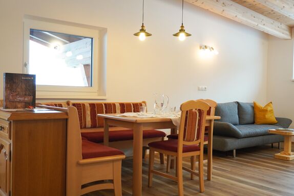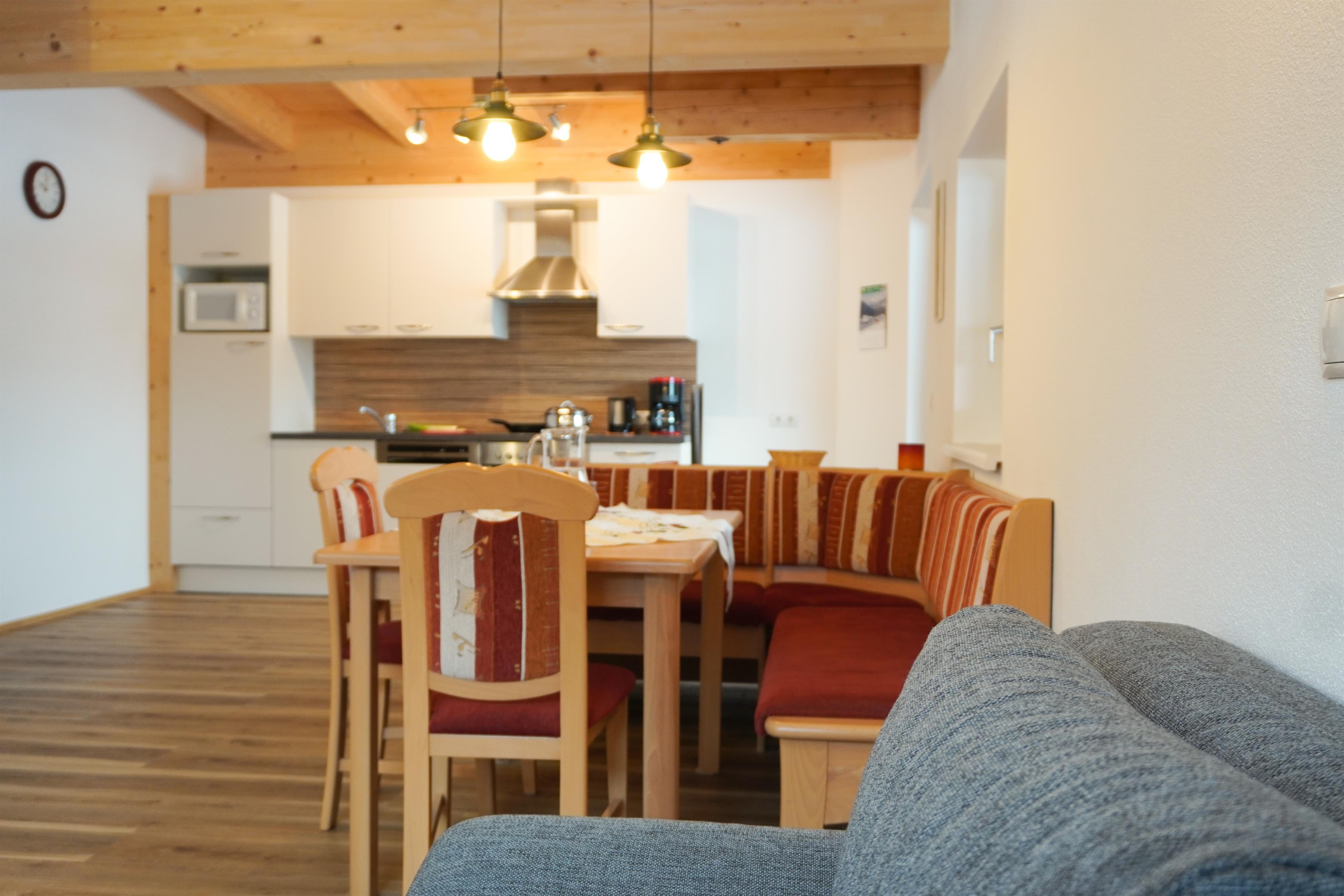 Die Ferienwohnung Vorderhorn umfasst 82 m² und liegt im 2. Stock und hat einen eigenen Balkon und bietet mit 2 Schlafzimmern Platz für 2 - 6 Personen. Die geräumige Wohnküche ist komplett ausgestattet inkl. Mikrowelle, Ceran-Kochfeld, Backofen, Geschirrspüler, Geschirr usw. Weiters hat die Wohnung 2 Badezimmer und eine getrennte Toilette. Im 2. Schlafzimmer ist auch ein 2. Flat-TV.