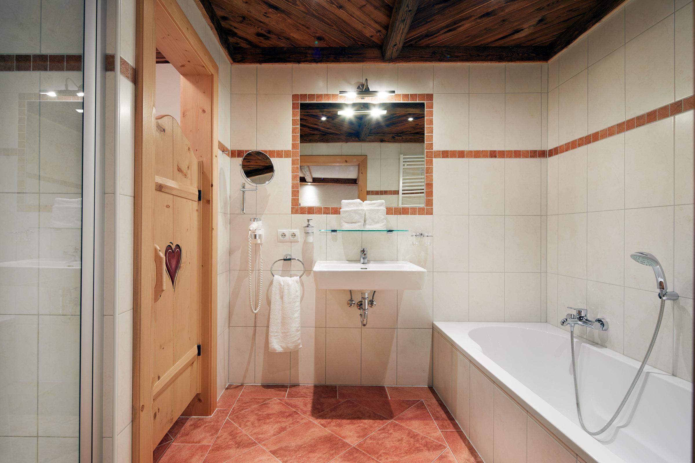 • 1 Doppelzimmer mit zusätzlicher Schlafcouch, Kabel-TV, Safe, Badewanne/Fön/Kosmetikspiegel/ WC (getrennt)