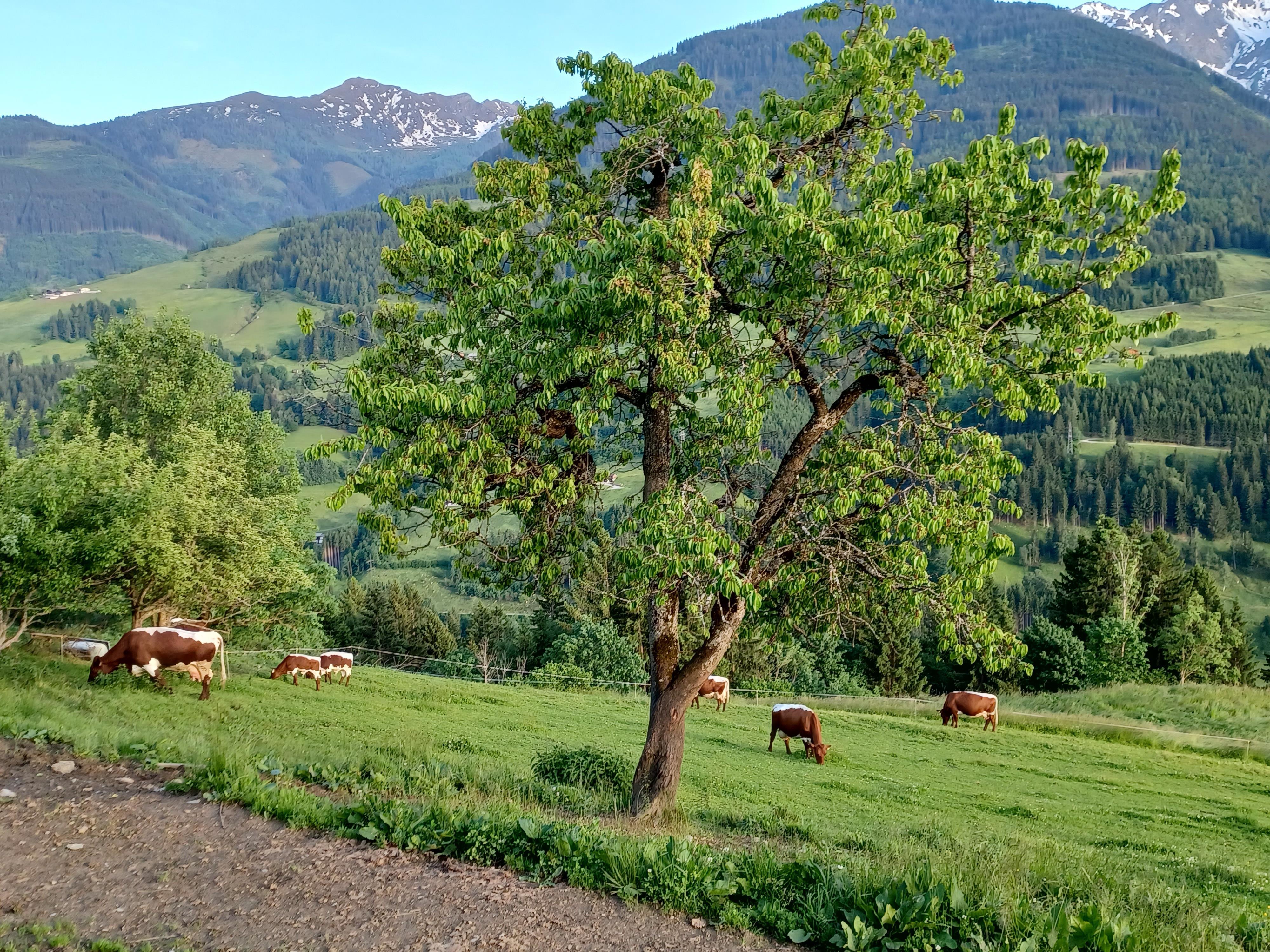 Urlaub auf dem Bergbauernhof, auf der Sonnenseite in 950m Seehöhe, fantastischer Aussicht auf die Bergwelt des Nationalpark Hohe Tauern.
