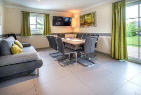 • Koch- und Essbereich mit integrierter Küche – ausgestattet mit Geschirrspülmaschine, Wasserkocher, Toaster und Kaffeekapselmaschine bzw. Filterkaffeemaschine