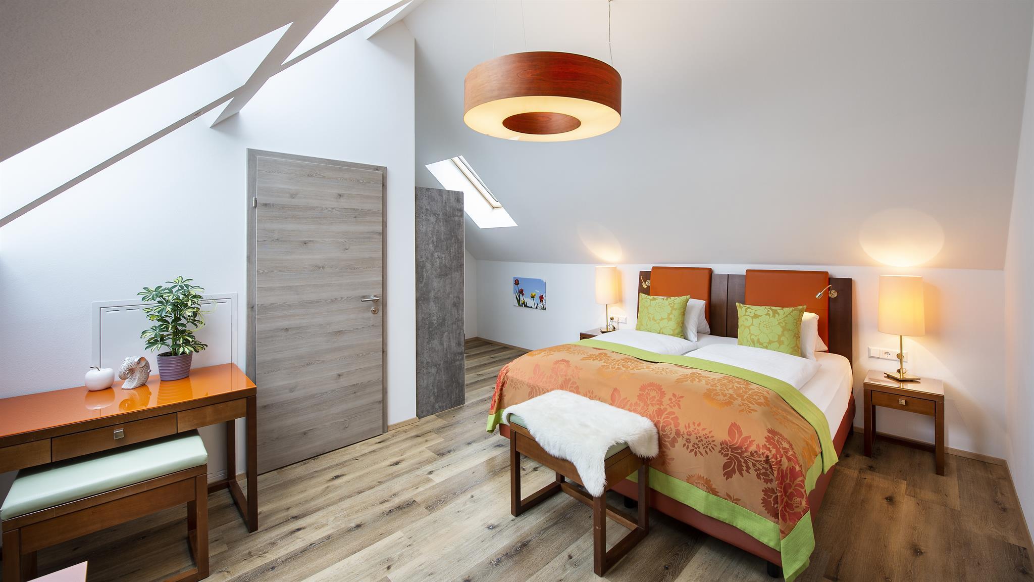 Außerdem ist ein weiteres Schlafzimmer über den Gang erreichbar, ebenfalls mit Dusche und WC.