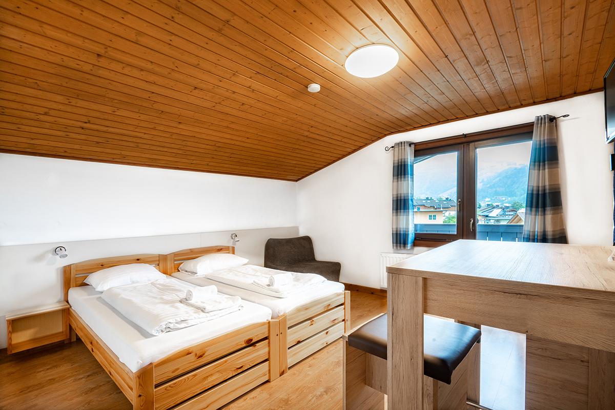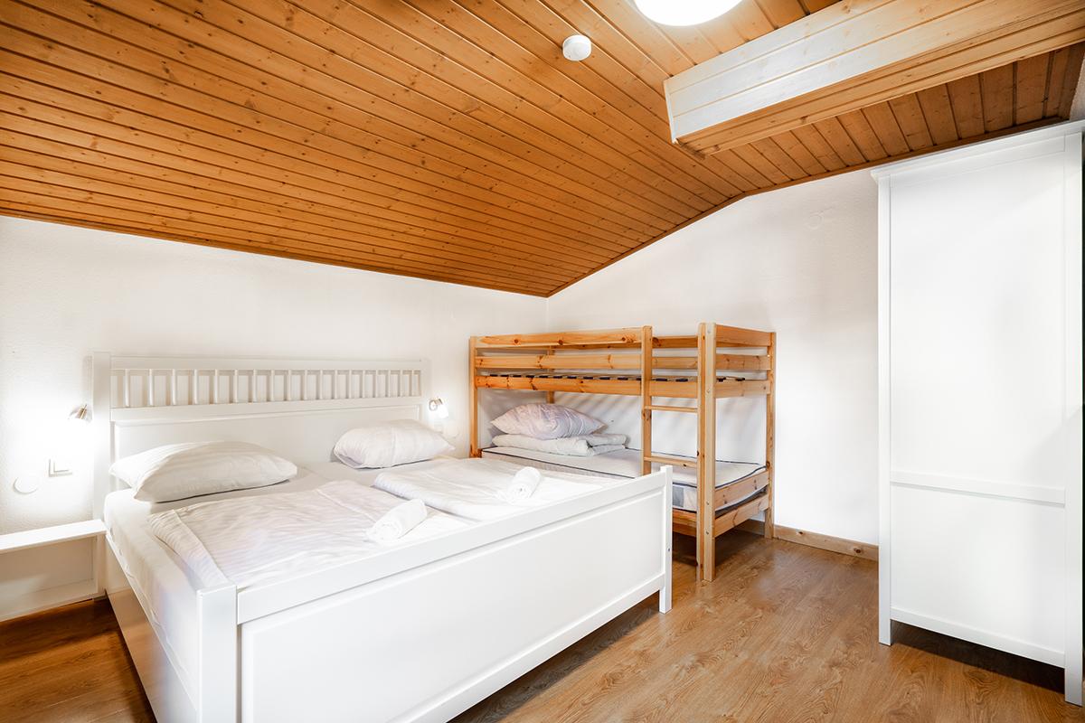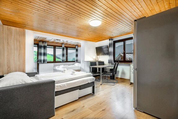 Appartement im zweiten Stock für bis zu 4 Personen. Das Appartement ist ausgestattet mit einem Doppelbett, einem Couchbett für 2 Personen und einem Balkon mit herrlichem Bergblick. Es verfügt über ein Badzimmer mit DU, WC und eine voll ausgestattete Küche mit Kühlschrank, Backofen, Kaffeemaschine u.v.m. HD TV sowie freies WLAN.