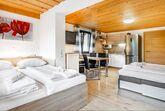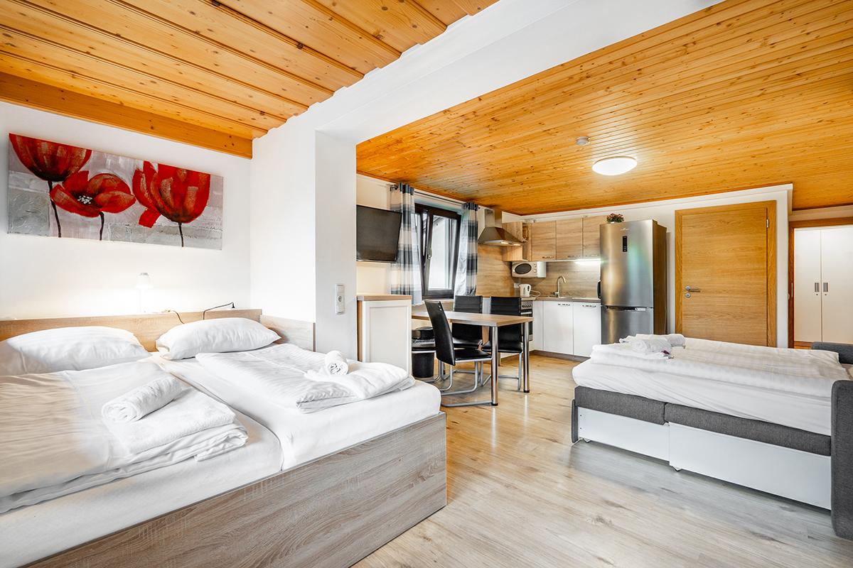Appartement im Erdgeschoß für bis zu 5 Personen. Das Appartement ist ausgestattet mit einem Doppelbett, einem Couchbett für 2 Personen und ein ausziehbares Sofa für 1 Person. Es verfügt über ein Badzimmer mit DU, WC und eine voll ausgestattete Küche mit Kühlschrank, Backofen, Kaffeemaschine u.v.m. HD TV sowie freies WLAN.