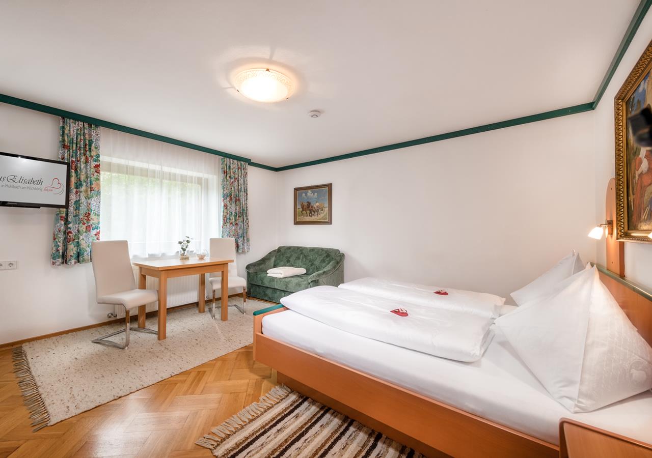 Das Haus Elisabeth ist eine wunderschöne, geschmackvoll eingerichtete und gepflegte Frühstückspension. Alle Zimmer sind mit Dusche/WC, Kabel-TV, Balkon oder einer Liegewiese ausgestattet. Für alle Gäste sind genügend Parkplätze vorhanden. Sehr ruhige, sonnige Lage, nur 5 Gehminuten vom Ortskern entfernt. Ausgangspunkt vieler Wanderziele. Genießer Frühstück. Keine Tiere! Nichtraucher! gratis Internet(W-LAN)