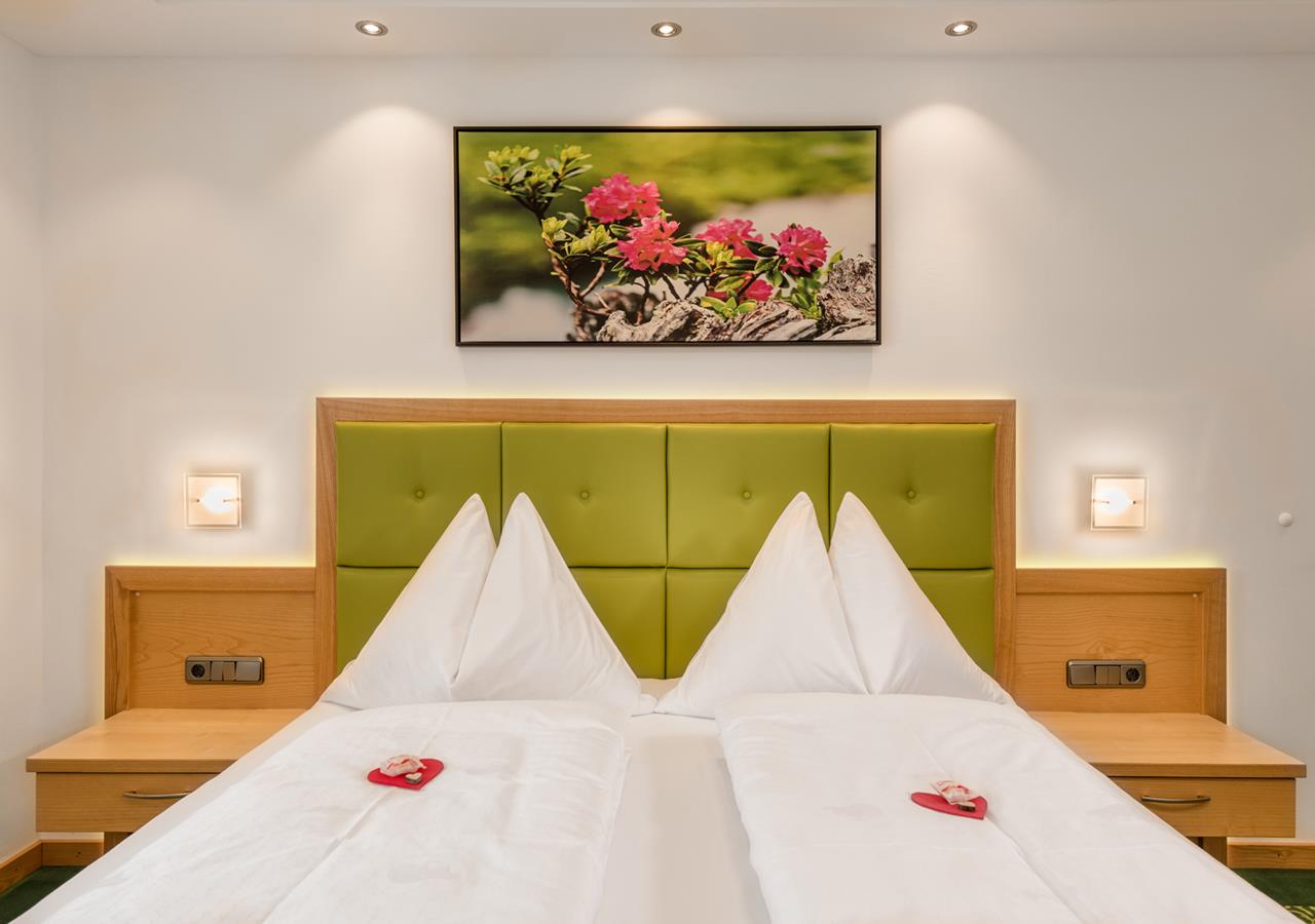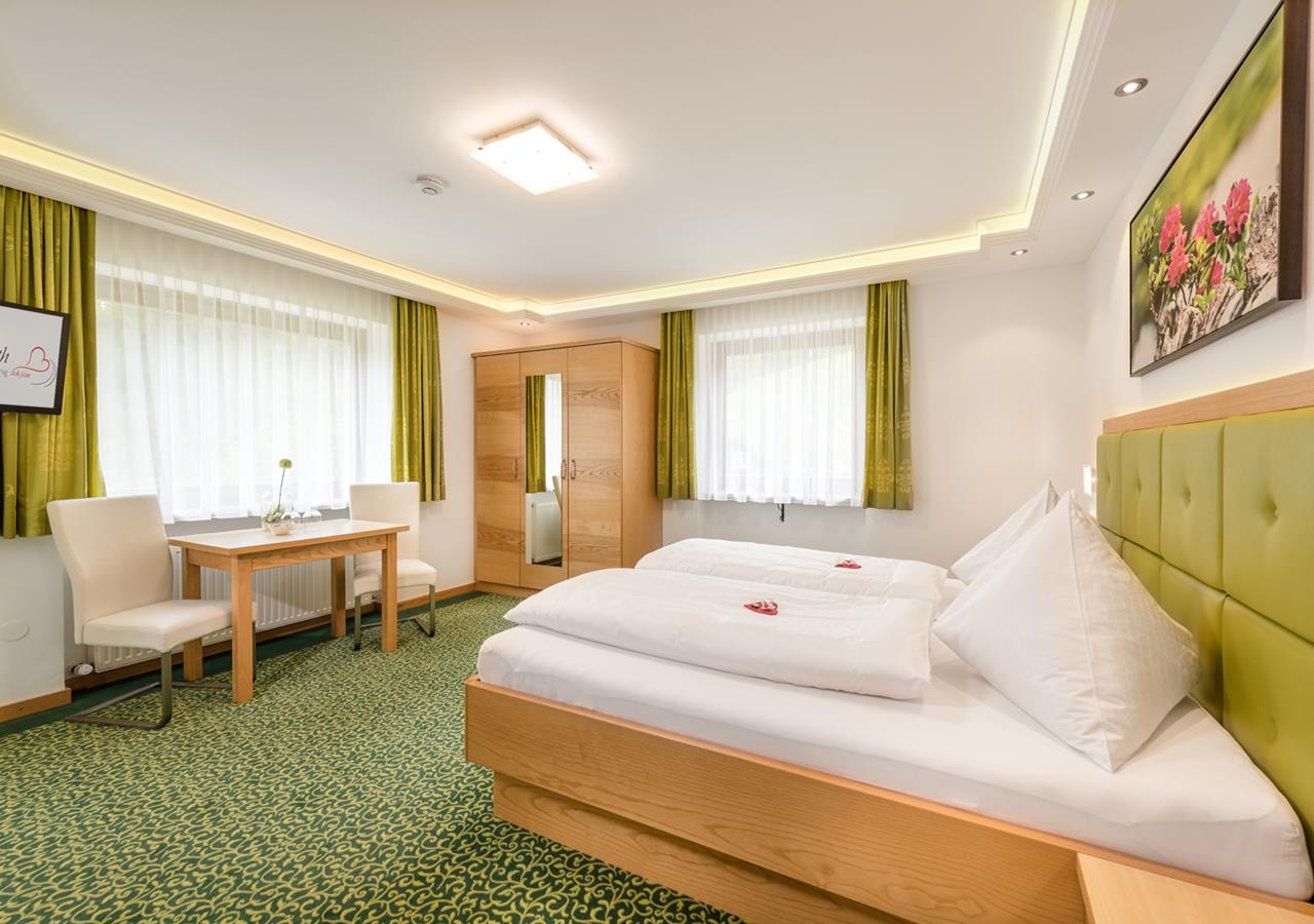 Großzügige individuell herzlich fein eingerichtete Doppelbettzimmer, mit viel Liebe zum Detail. •Freies W-LAN •Flatscreen-TV •Dusche und WC, Pflegeprodukte,Fön •Terrasse mit Sitzmöbel •Individuelle Einrichtung •Höchster Schlafkomfort in Qualitätsmatratzen •Frisches, belebtes Bergquellwasser nach Johann Grander im ganzen Haus