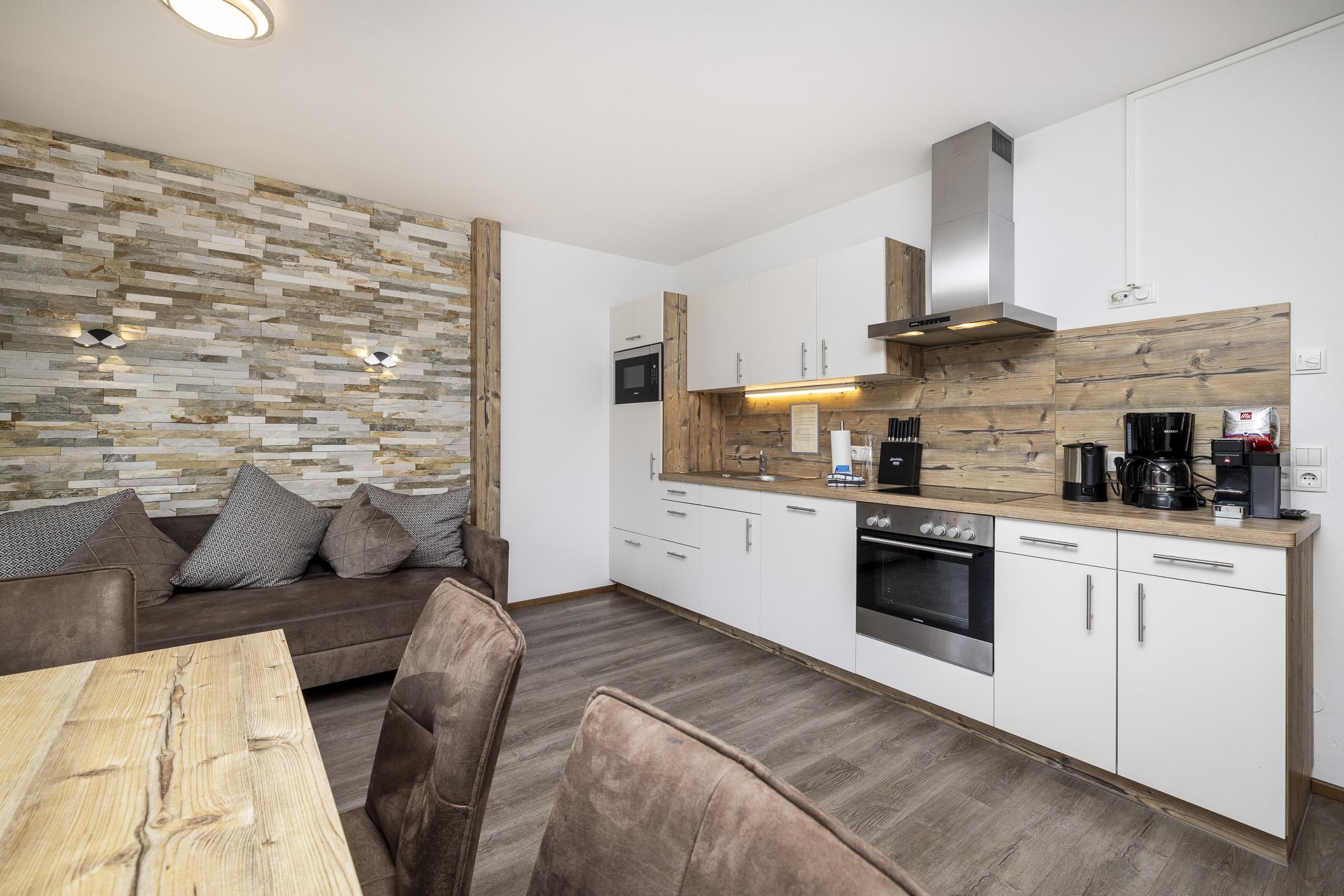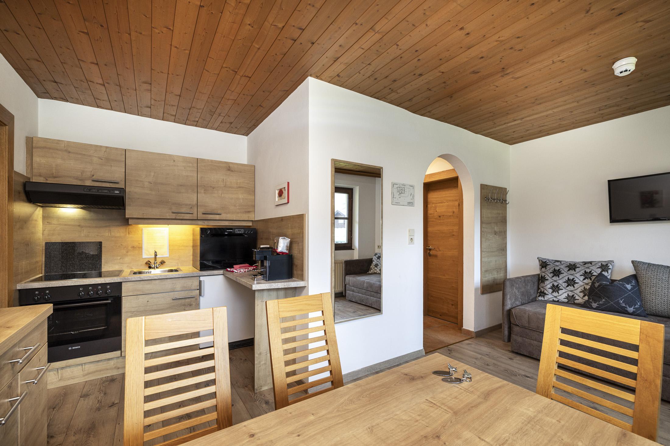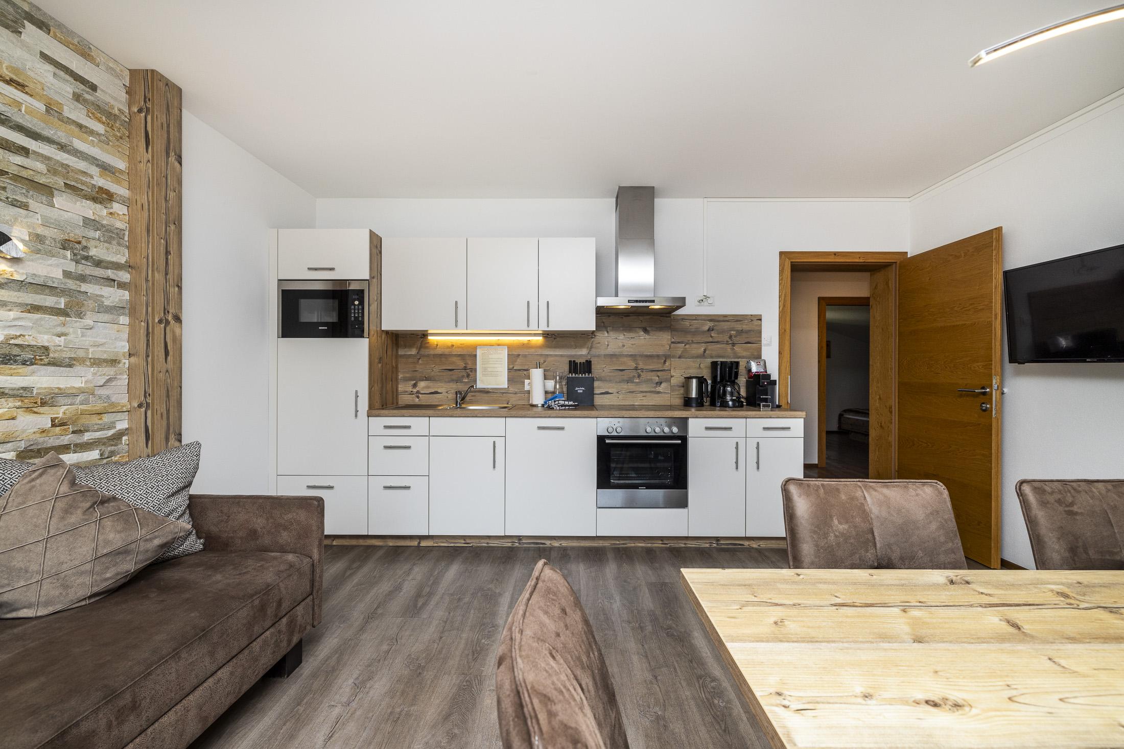 Neu errichtetes Appartement mit Wohnküche und Essecke, Ausziehcouch, 3 Schlafzimmer mit Doppelbett und Du/WC, Vorraum, Kabel-TV, Radio, Internetanschluss