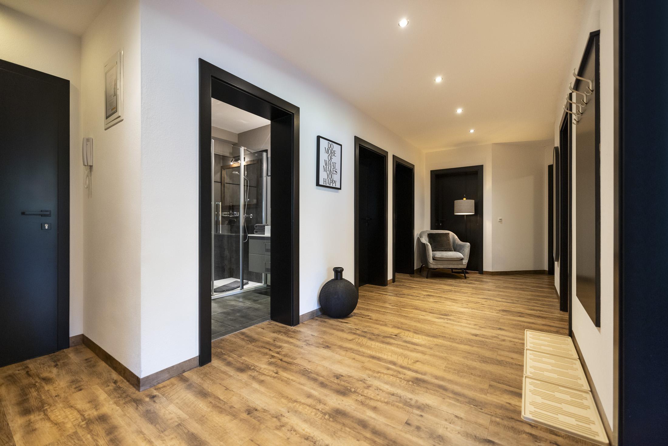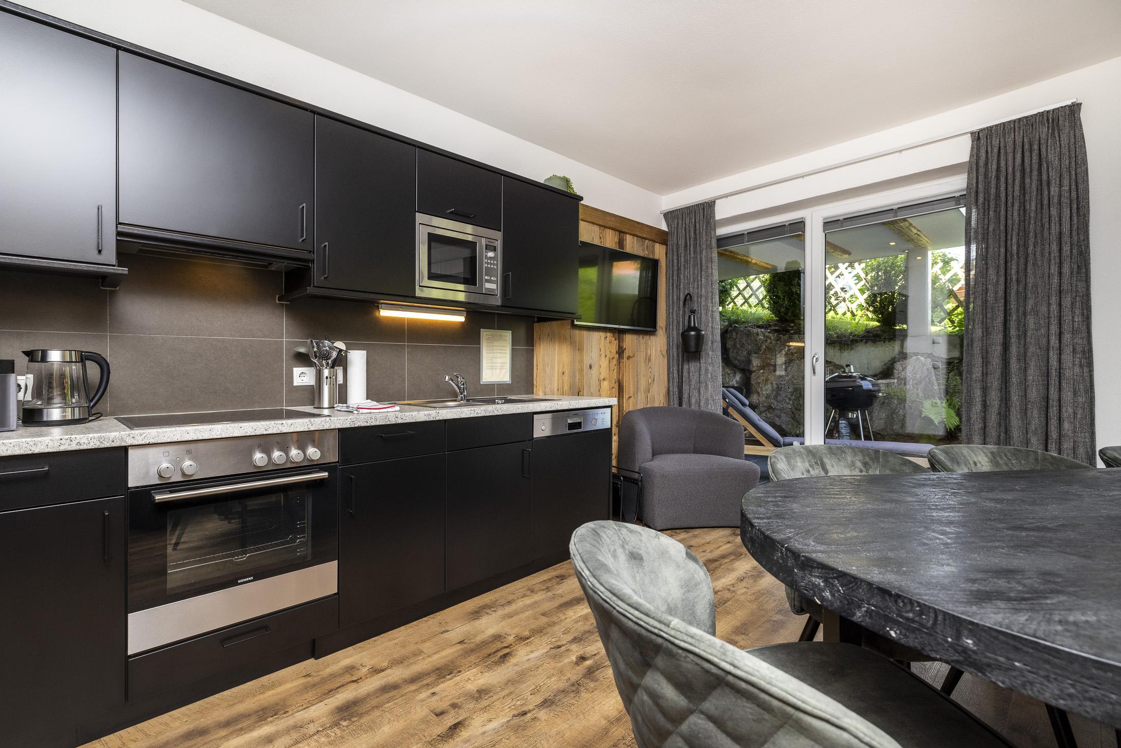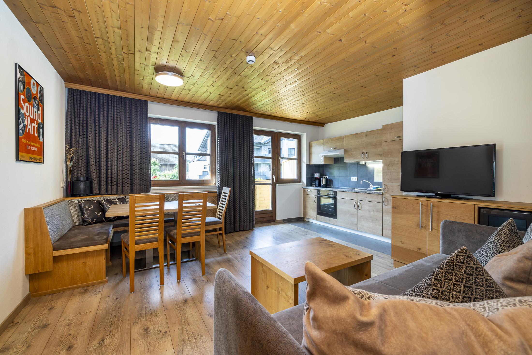 Neu errichtetes Appartement mit Wohnküche und Essecke, Ausziehcouch, 3 Schlafzimmer mit Doppelbett und Du/WC, Vorraum, Kabel-TV, Radio, Internetanschluss