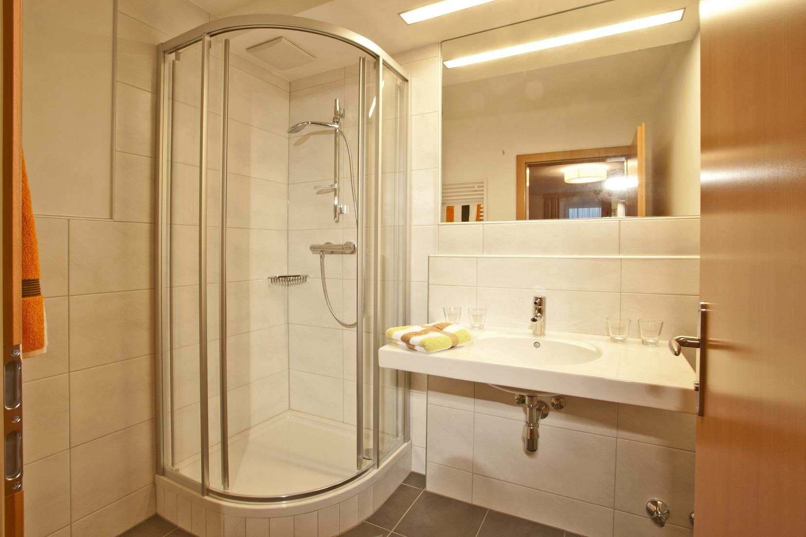 Bad mit Dusche und Handtuchtrockner, WC separat. Vorraum mit Garderobe. Flachbildschirm mit digitalem Kabel-TV-Anschluss in jedem Zimmer.