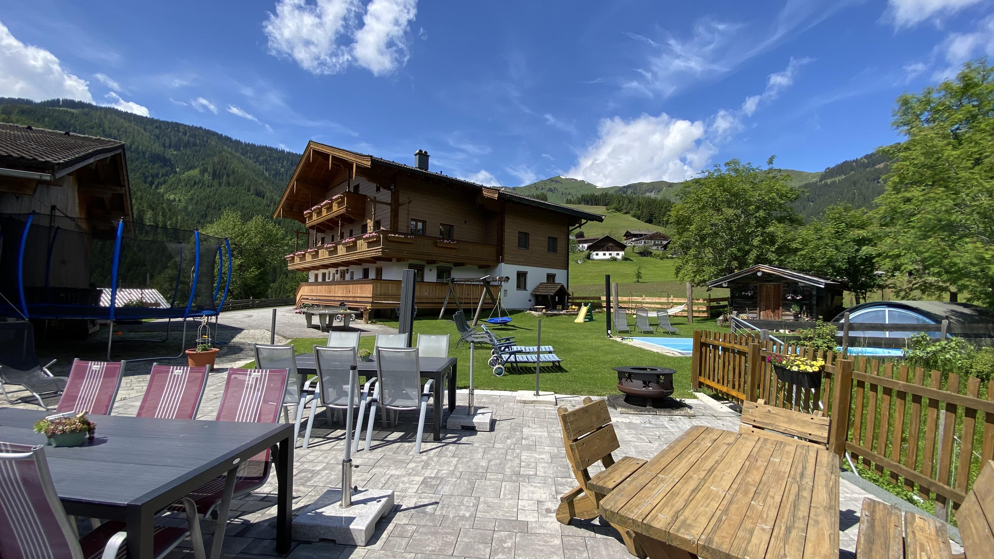 Familienfreundlicher Biobauernhof auf herrlichem Aussichtsplateau in ruhiger und sonniger Lage. Den Alltag vergessen, die Natur genießen und die Seele baumeln lassen. Unsere Tiere als gute Freunde erleben, mit uns wandern, am Abend grillen und viel Spaß beim Spielen haben. Es erwartet Sie: Sonnenterasse, Liegewiese,Hängematte, Grillecke, Tischtennis, beheizbarer Schuhraum, Rodelmöglichkeit, Kinderspielplatz u. -wiese, Gartenhäuschen, Schwimmbecken überdacht(30 m²). Tiere am Hof/Zweitbauernhof/Weide: Katzen,Hühner,Hasen,Hund,Mutterkühe,Kälber,Pferd. Eigene Trinkwasserquelle die 1 Mal Jährlich kontrolliert wird. Komfortabel ausgestattete Wohnungen. Unser Hit: Hochkönig Card, Almwanderungen vom Hochkönig Tourismus und Brötchenservice. Das Mitbringen von Hunden ist nur gegen Anfrage und  einen Aufpreis erlaubt. (20 Euro/Tag und Hund ohne Verpflegung)