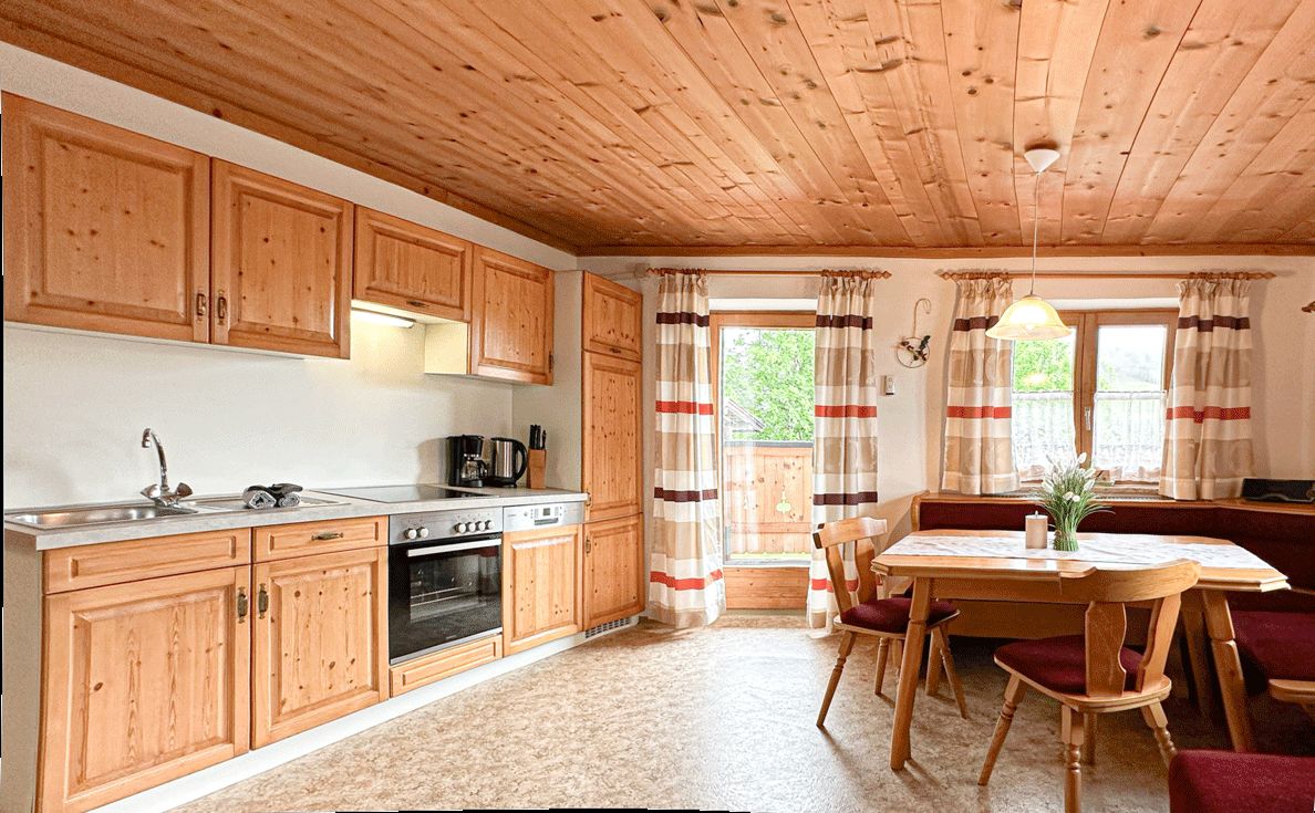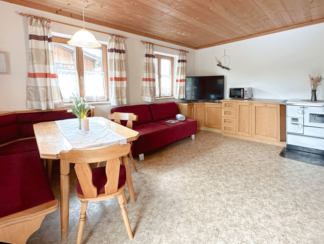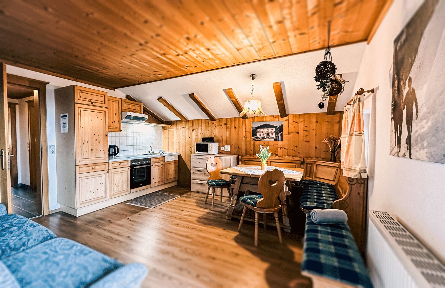 Die Zimmer dieser im Erdgeschoss liegenden Wohnung, ausgestattet mit wunderschönen massiven Fichtenholzmöbeln, bieten Platz für 4 bis zu 6 Personen (2 Doppelzimmer und einer Schlafcouch in der Küche). Im Wohn- / Küchenbereich, der mit allem Komfort ausgestattet ist, findet die ganze Familie Platz für erholsame Urlaubstage. Vom Balkon aus haben Sie einen herrlichen Blick auf die umliegenden Berge und dem Spielplatz. Wohnung liegt im Erdgeschoss NEU 2 Carportstellplätze