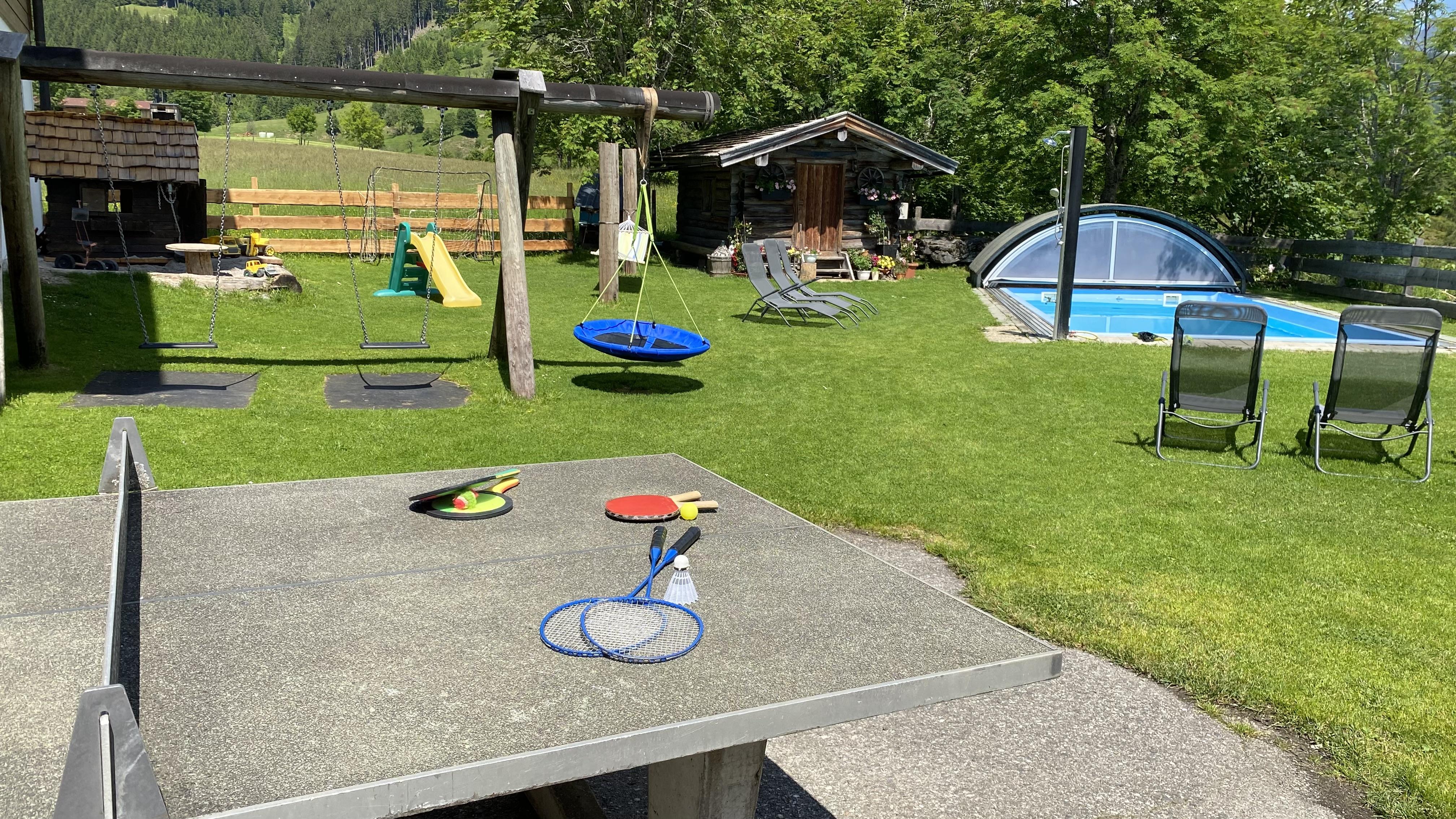 Familienfreundlicher Biobauernhof auf herrlichem Aussichtsplateau in ruhiger und sonniger Lage. Den Alltag vergessen, die Natur genießen und die Seele baumeln lassen. Unsere Tiere als gute Freunde erleben, mit uns wandern, am Abend grillen und viel Spaß beim Spielen haben. Es erwartet Sie: Sonnenterasse, Liegewiese,Hängematte, Grillecke, Tischtennis, beheizbarer Schuhraum, Rodelmöglichkeit, Kinderspielplatz u. -wiese, Gartenhäuschen, Schwimmbecken überdacht(30 m²). Tiere am Hof/Zweitbauernhof/Weide: Katzen,Hühner,Hasen,Hund,Mutterkühe,Kälber,Pferd. Eigene Trinkwasserquelle die 1 Mal Jährlich kontrolliert wird. Komfortabel ausgestattete Wohnungen. Unser Hit: Hochkönig Card, Almwanderungen vom Hochkönig Tourismus und Brötchenservice. Das Mitbringen von Hunden ist nur gegen Anfrage und einen Aufpreis erlaubt. (20 Euro/Tag und Hund ohne Verpflegung)