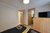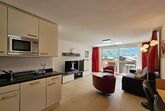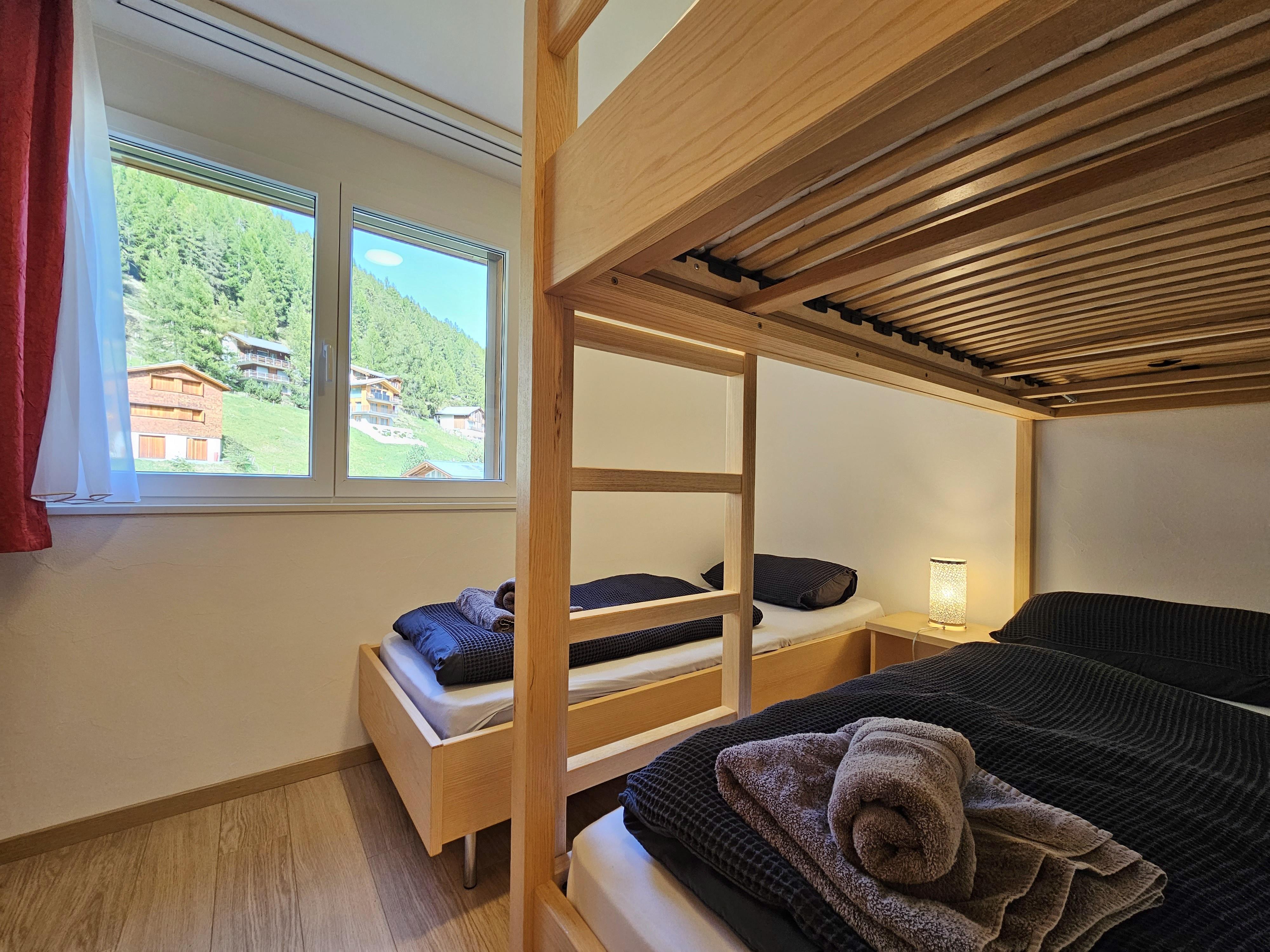 4-Sterne Superior Apartment mit 2 Schlafzimmern und 2 Badezimmer. Ein Schlafzimmer ist mit einem Doppelbett, das andere mit 3 Betten (Einzelbett plus Kajütenbett) ausgestattet. Das Apartment besitzt 2 Badezimmer, ein Badezimmer besitzt eine Badwanne und ein WC, das andere eine Dusche und ein WC. Das Apartment hat eine grossen, südlich ausgerichteten Balkon mit wunderschöner Bergsicht. Die offene, moderne Küche ist voll ausgestattet und umschliesst die Essecke neben dem Wohnzimmer.