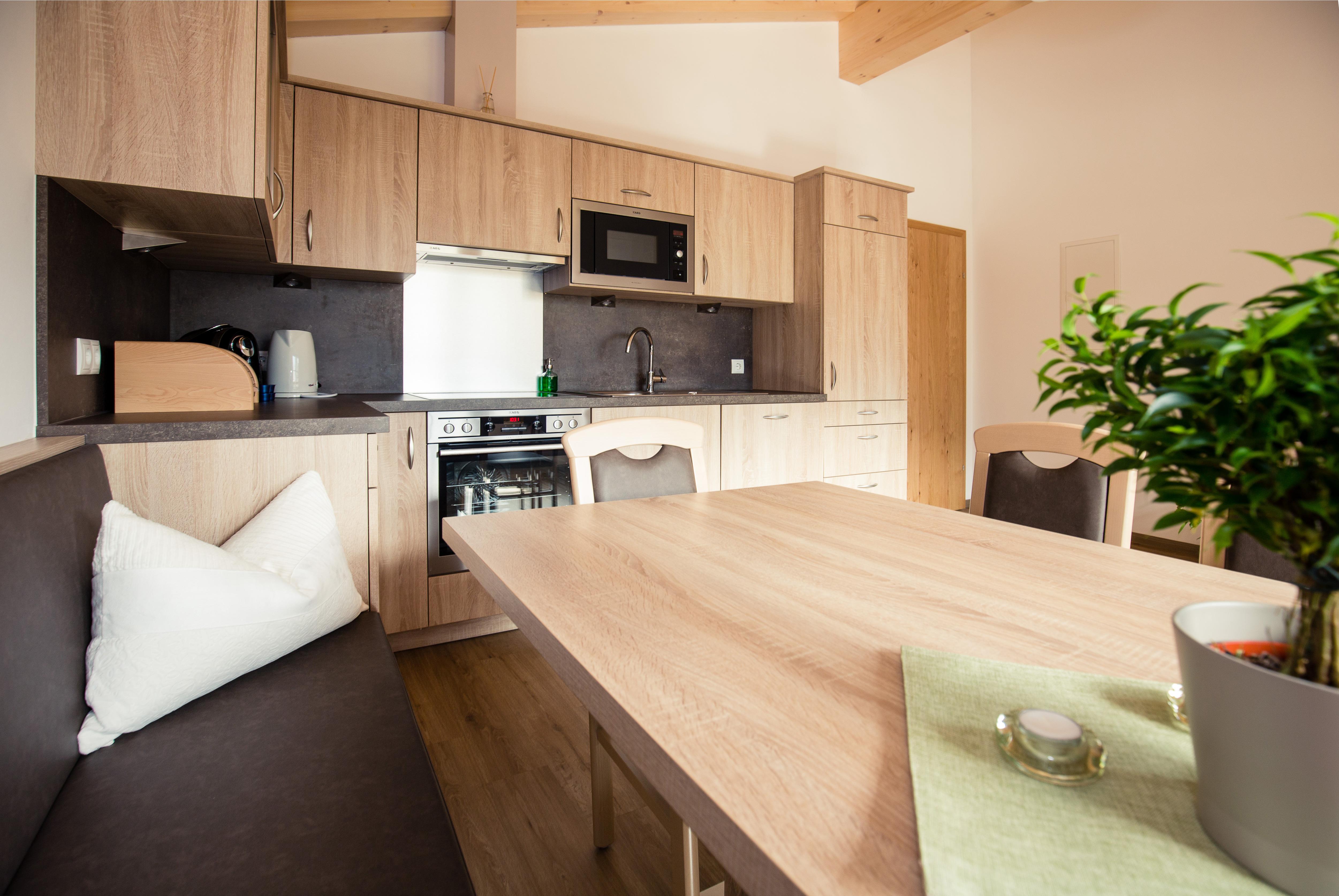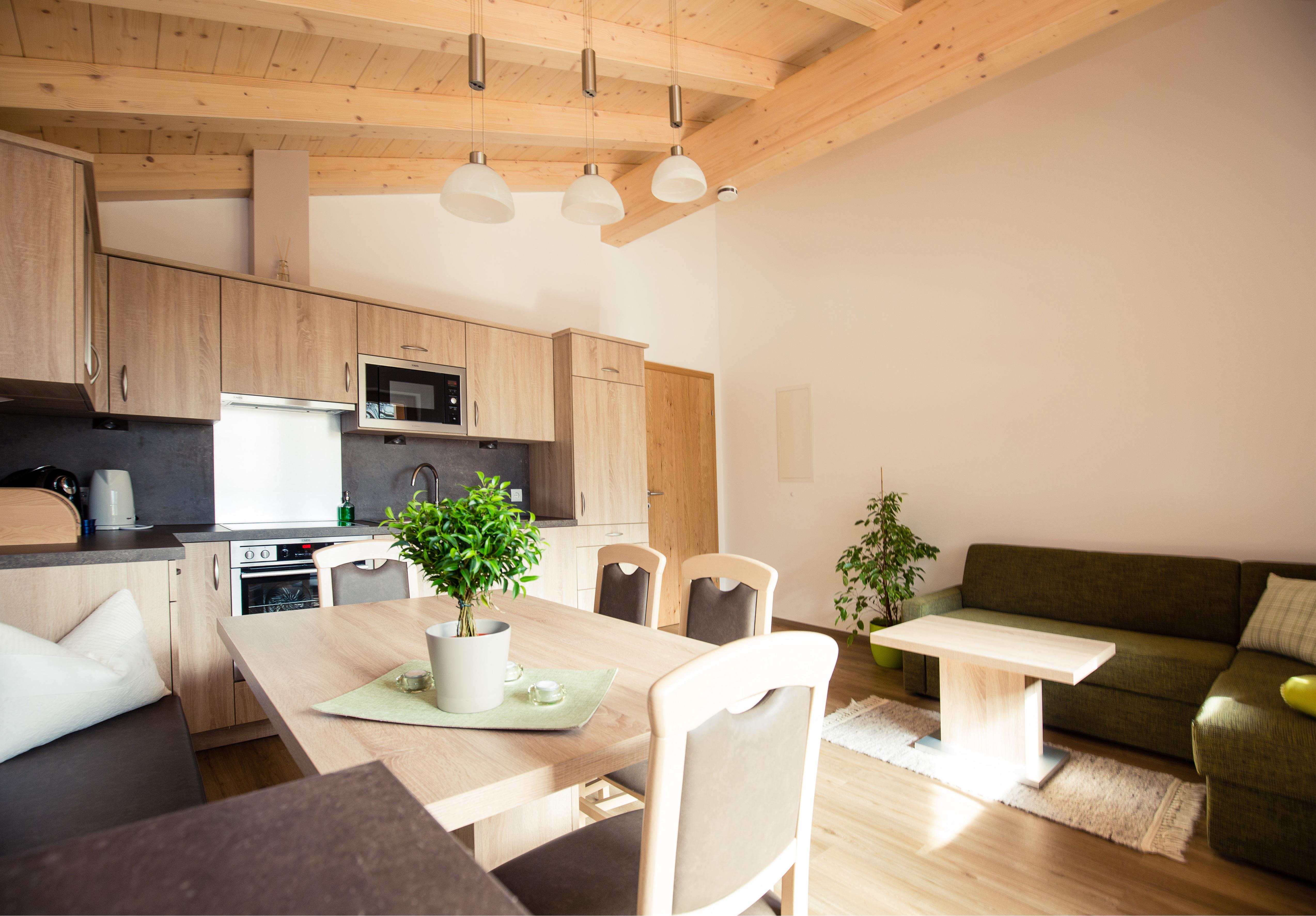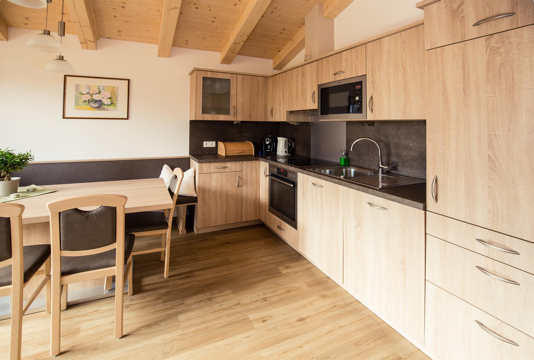 Das familiär geführte Bauernhaus bietet zwei Nichtraucher-Appartements für zwei bis drei Erwachsene oder eine Familie mit zwei Kindern. Beide Ferienwohnungen verfügen über eine moderne Wohnküche mit komplett ausgestatteter Küchenzeile und gemütlicher Sitzecke.