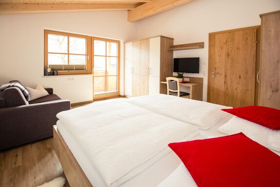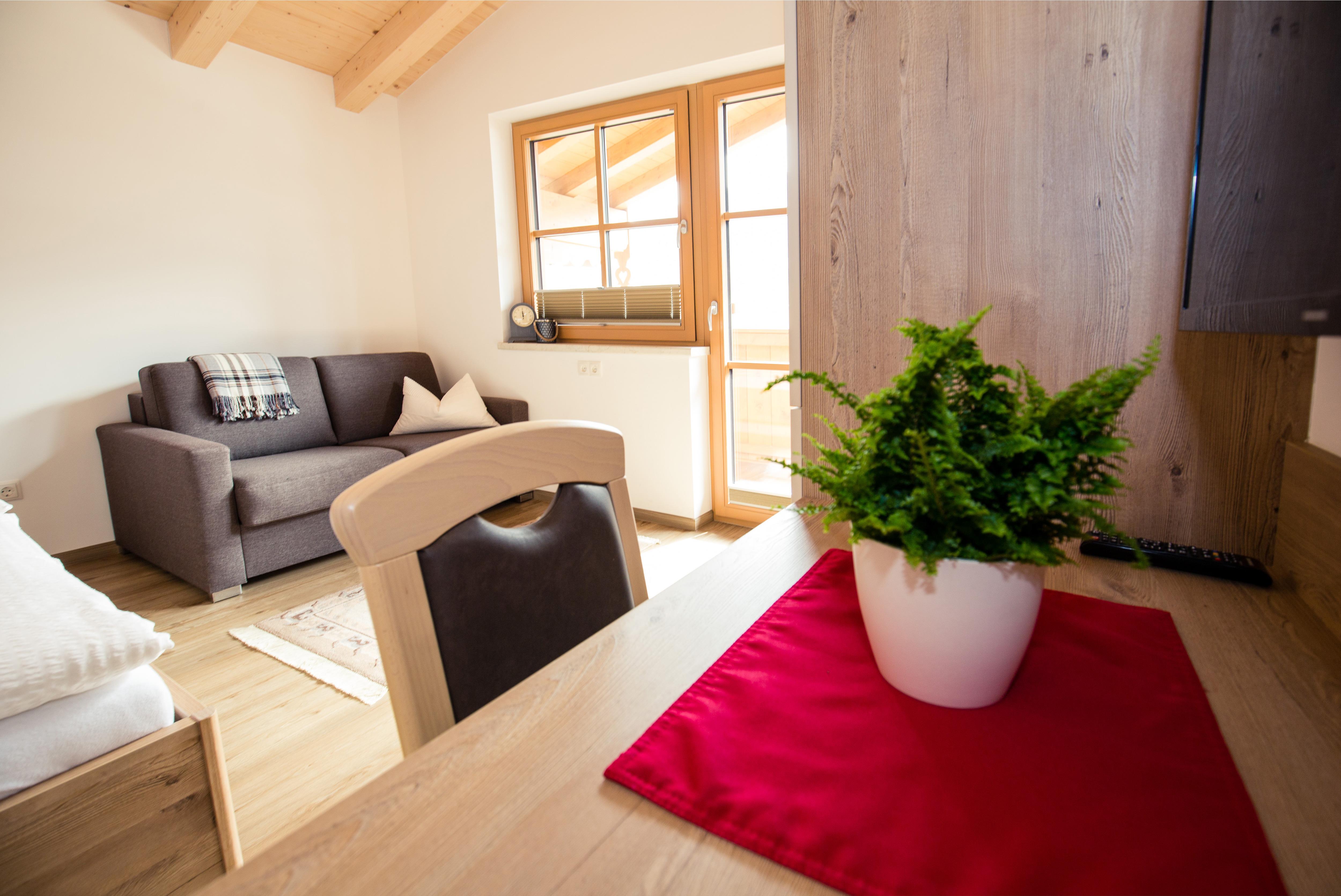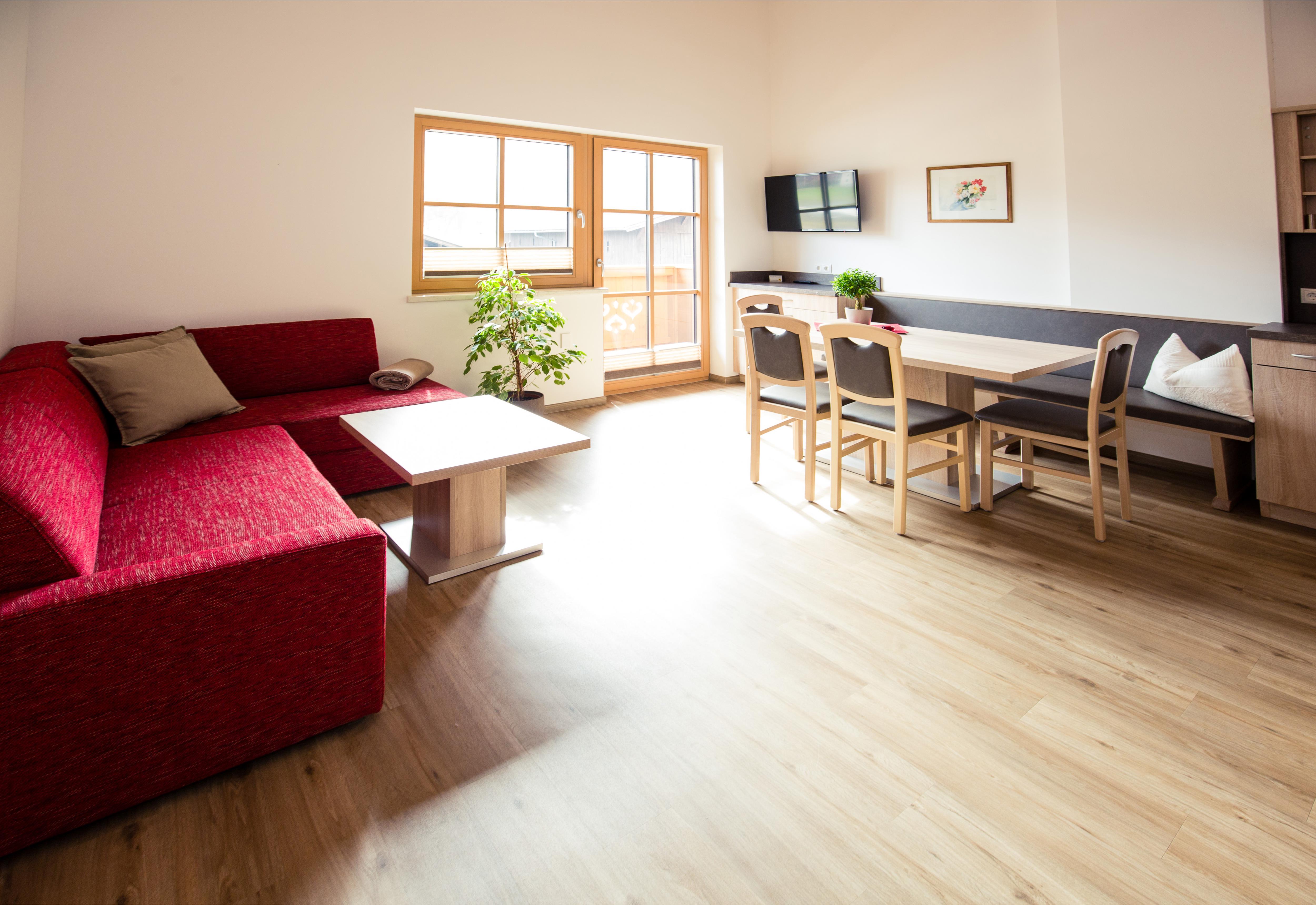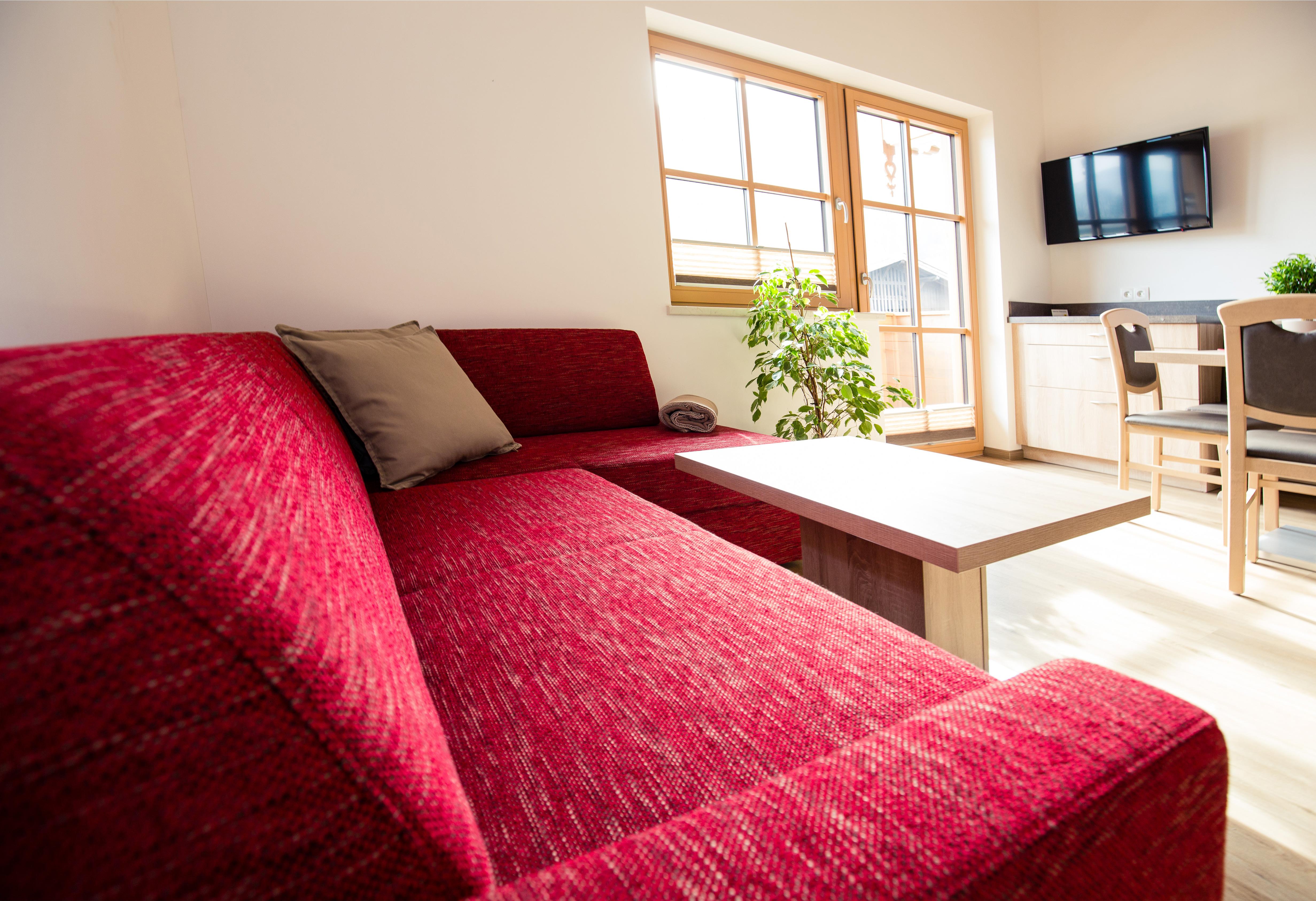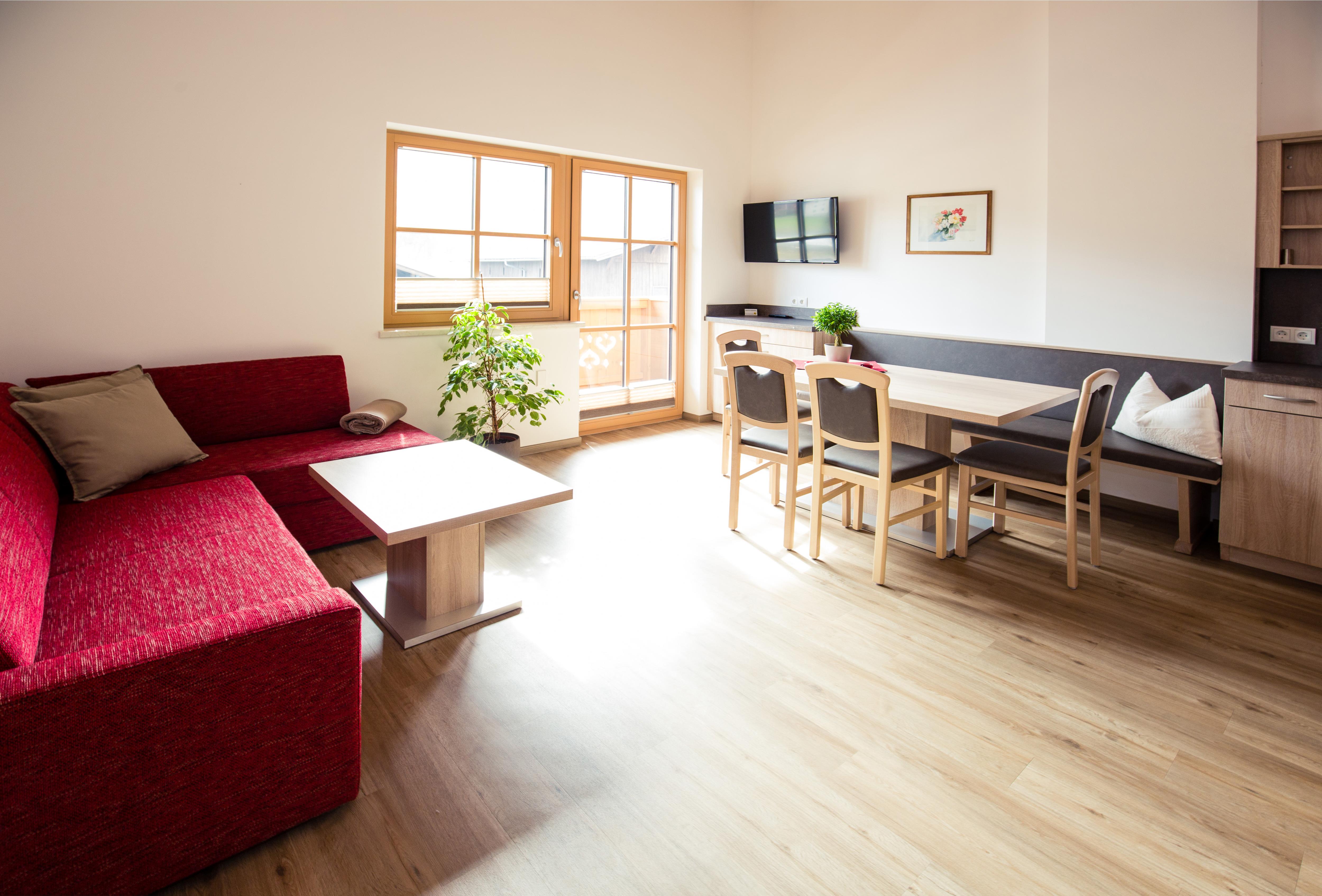 Das familiär geführte Bauernhaus bietet zwei Nichtraucher-Appartements für zwei bis drei Erwachsene oder eine Familie mit zwei Kindern. Beide Ferienwohnungen verfügen über eine moderne Wohnküche mit komplett ausgestatteter Küchenzeile und gemütlicher Sitzecke.