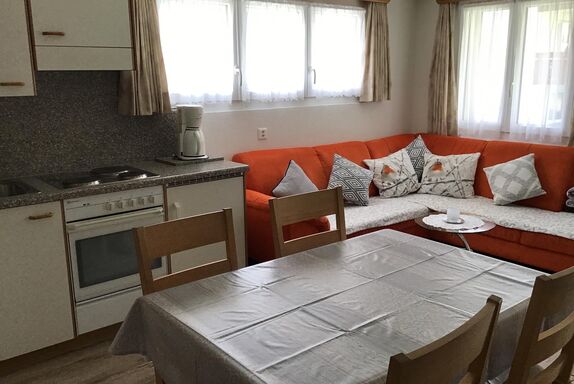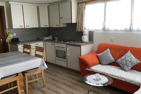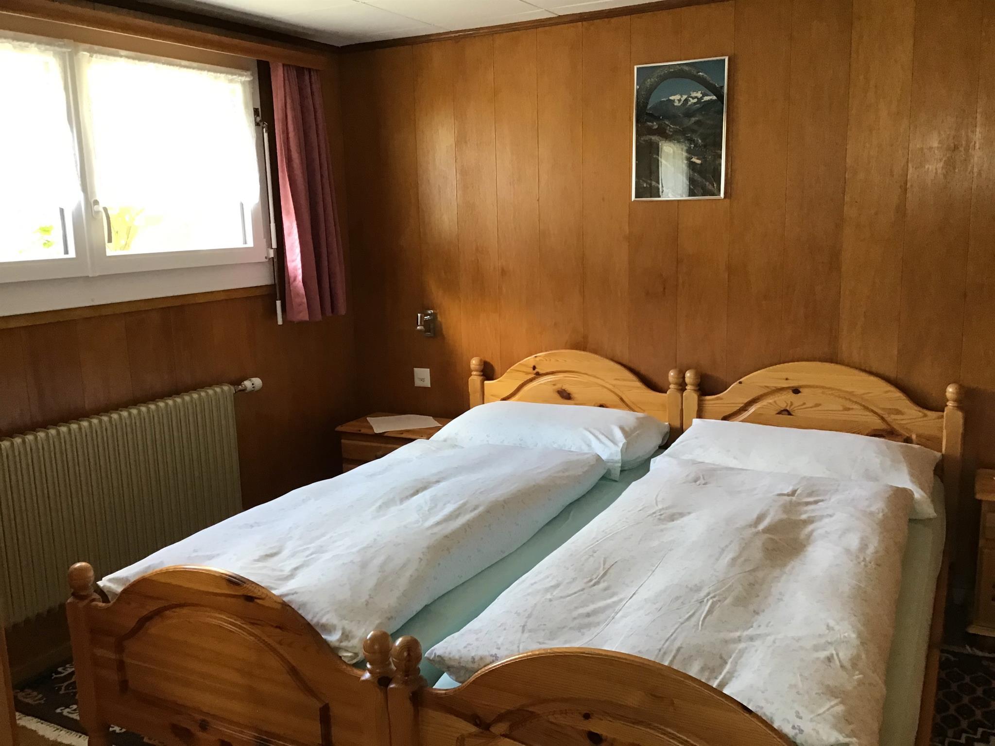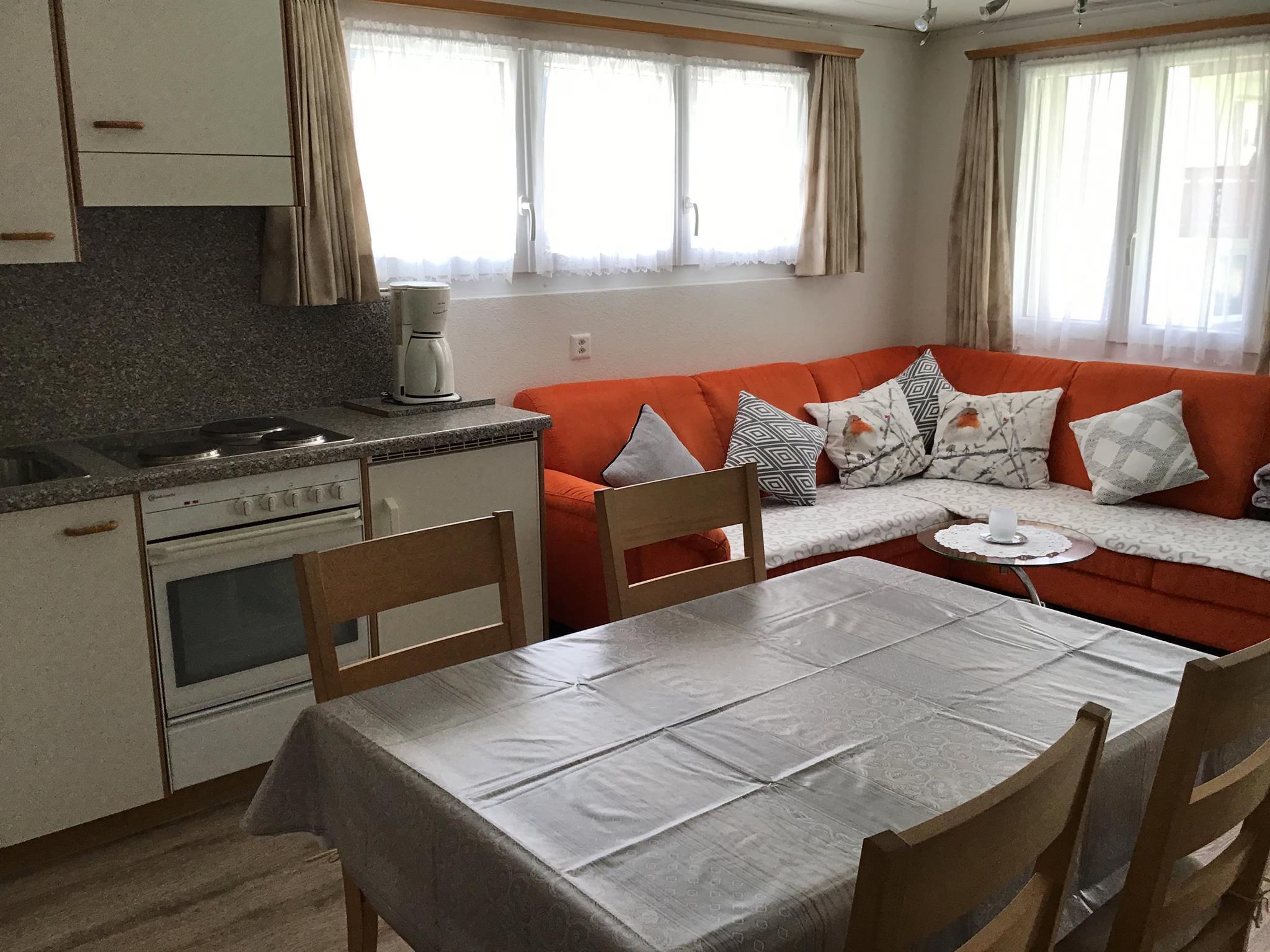 3-Zimmerwohnung (65 m2), Erdgeschoss, 2 Doppelschlafzimmer, grosse Wohn-Essküche, Bad/WC, TV, grosser Vorplatz, die Schlafzimmer sind mit Holz vertäfert.3-Zimmerwohnung