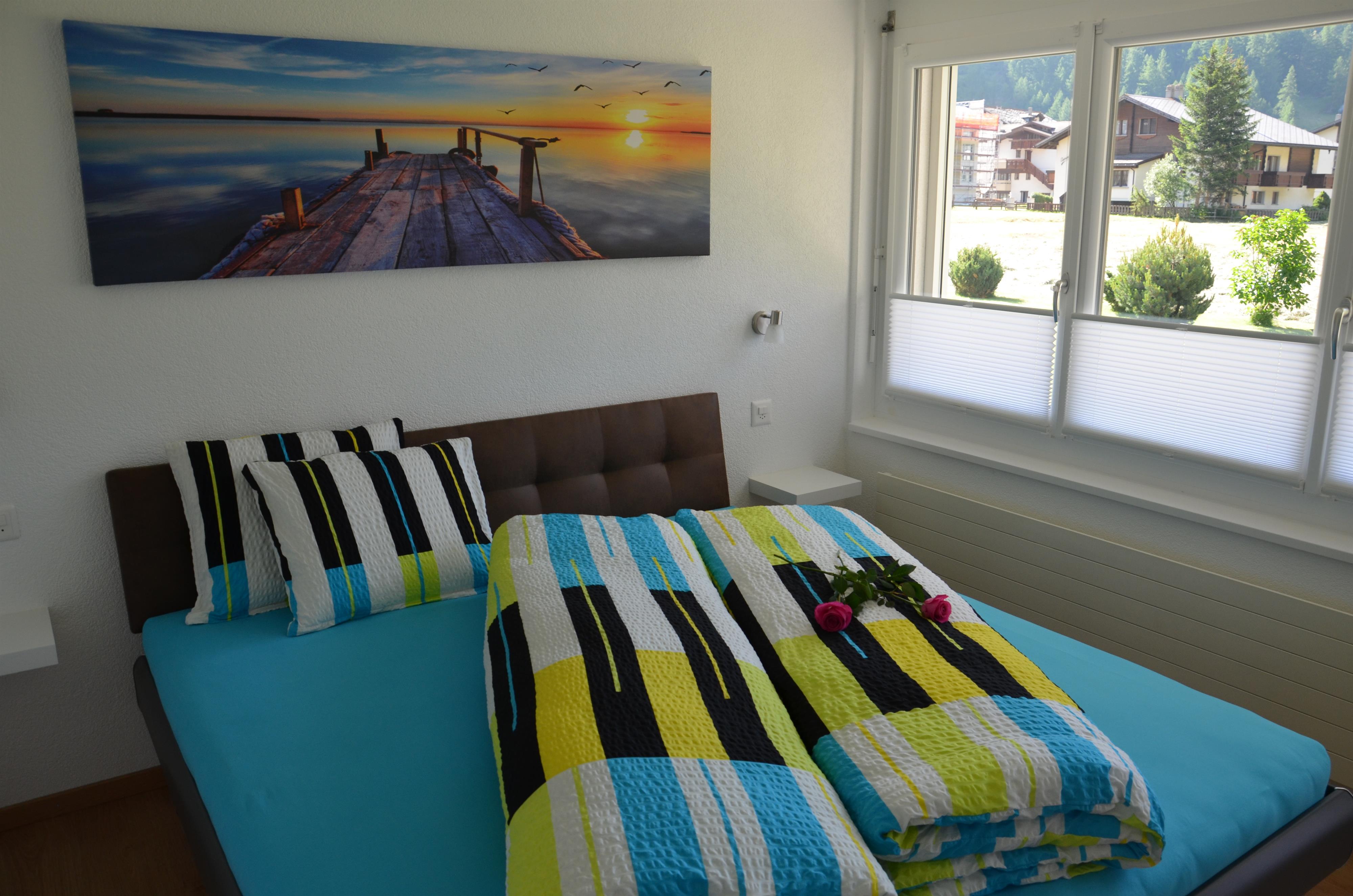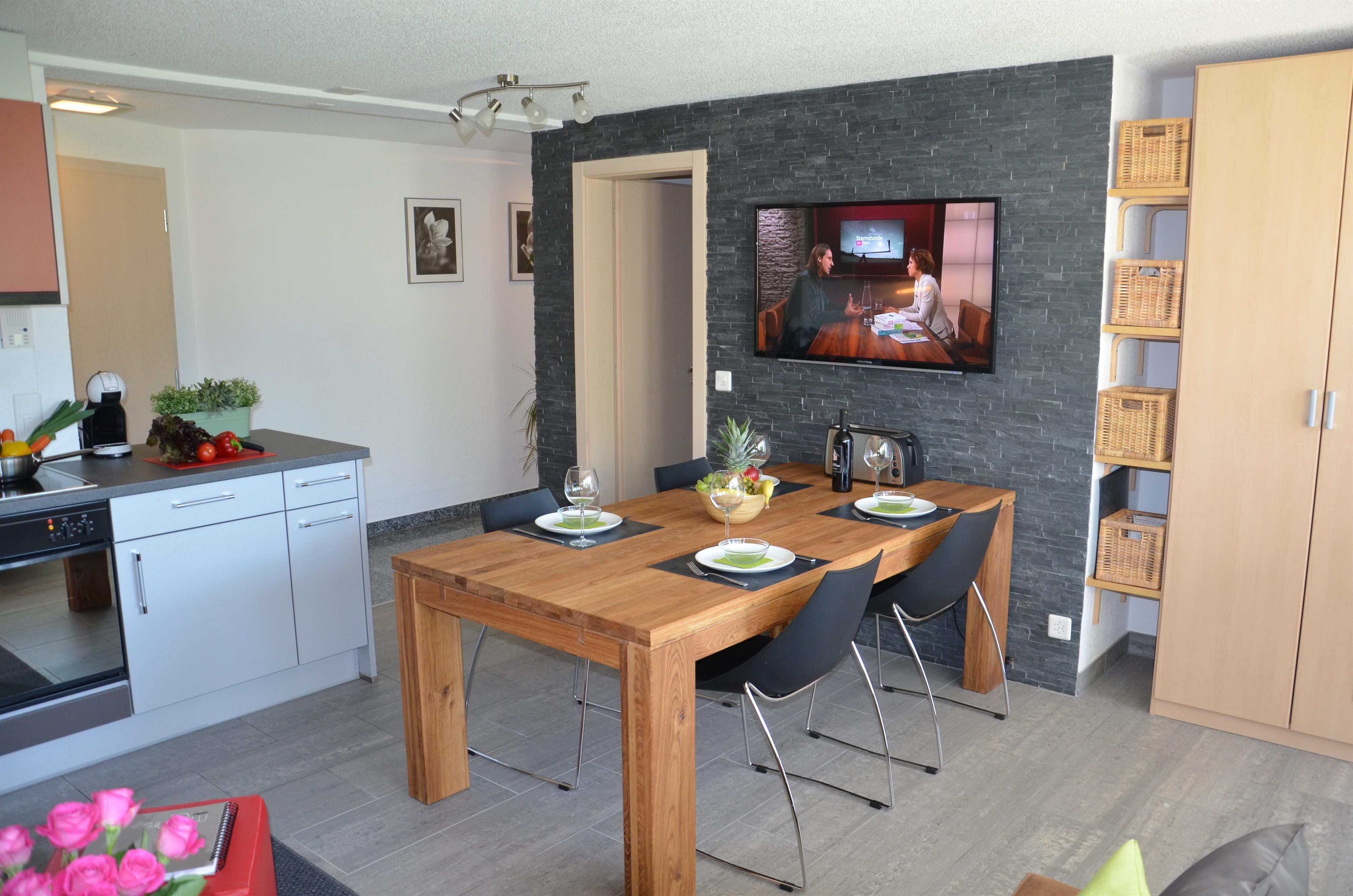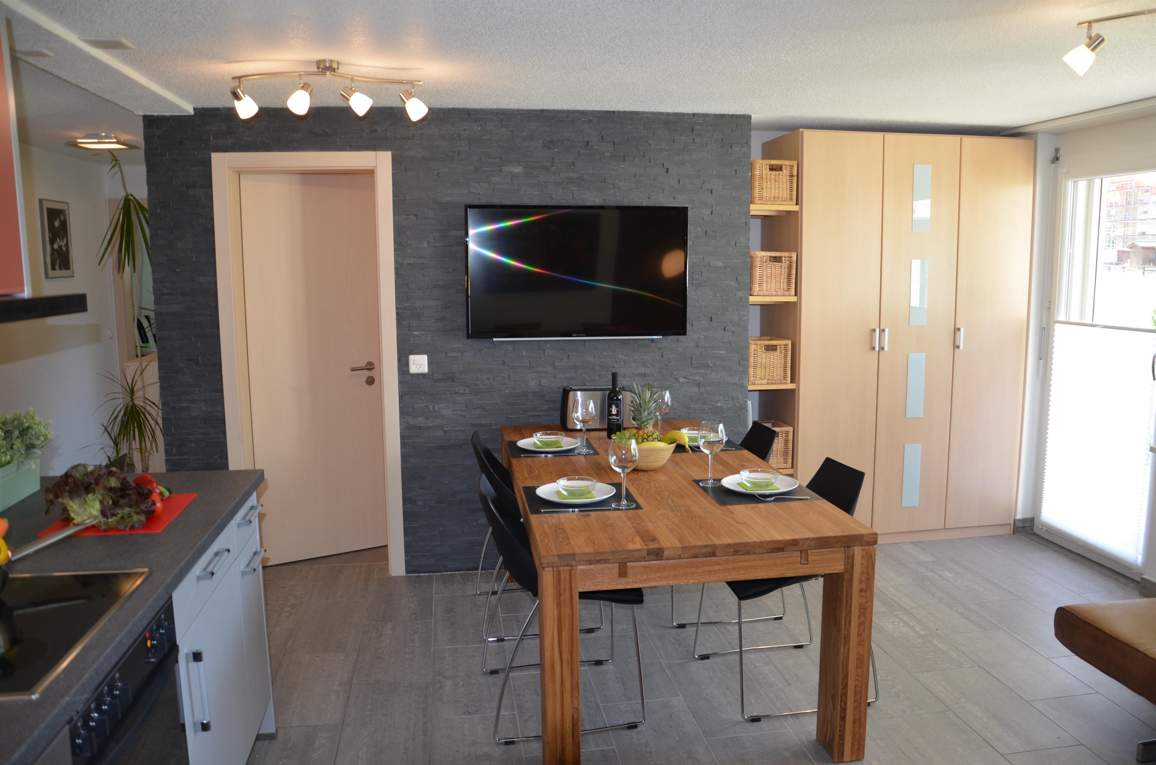 Schöne, moderne 3 1/2 Zi. Ferienwohnung in zentraler Lage, mit grosser Spiel- und Liegewiese im neuen Einfamilienhaus. Liebevoll gepflegte Gartenanlage. Eigener Parkplatz direkt beim Haus. Die Wohnung verfügt über 2 getrennte Schlafzimmer, Küche mit grossem Wohnzimmer. 2 separate WC und eines davon mit Dusche. Radio, Sat, 2 TV, CD Internet via WIFI gratis.