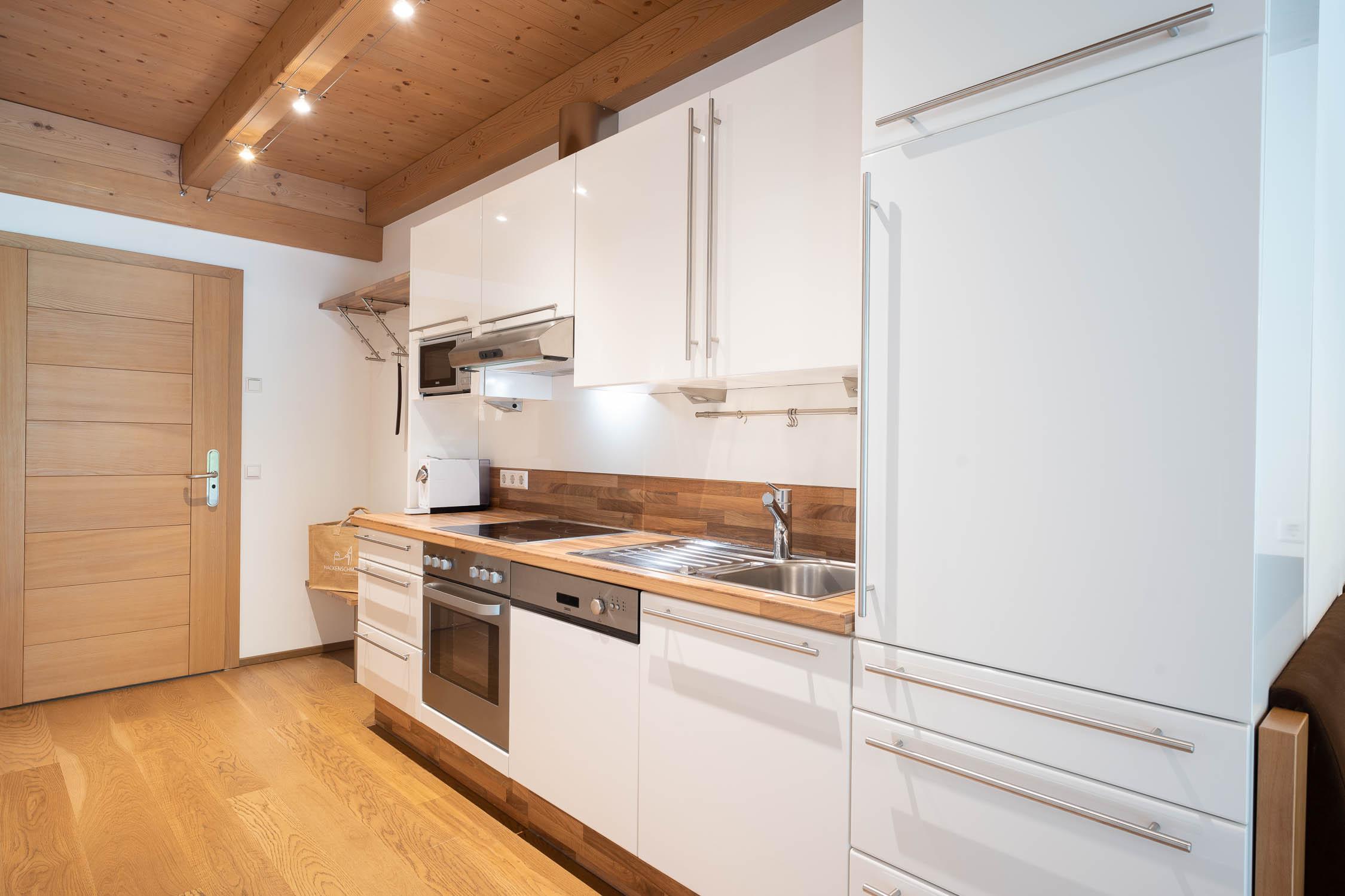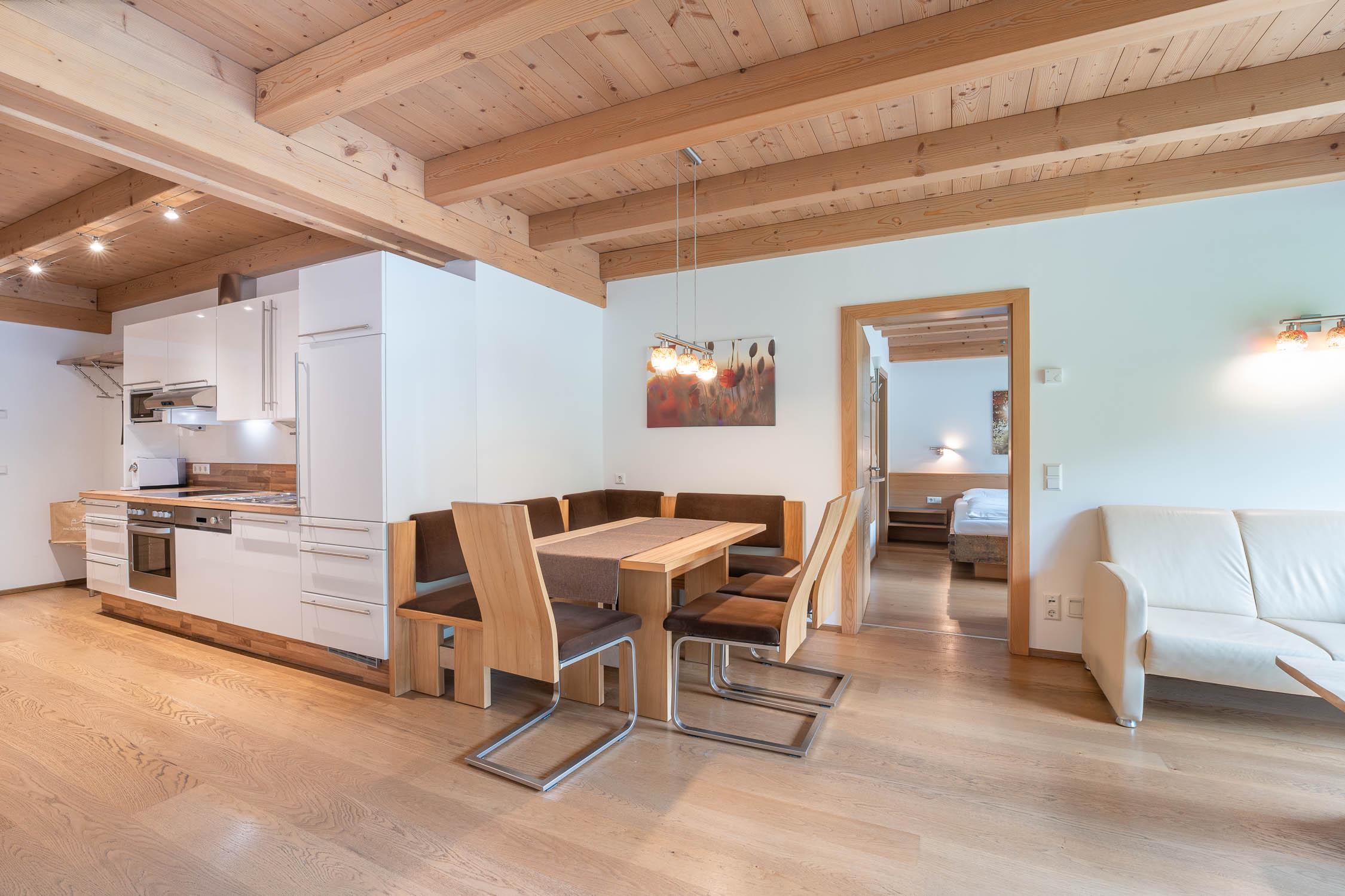 Geschmackvoll, modern eingerichtete Ferienwohnung mit Parkettboden und exclusivem Interieur, Küche mit Esstisch und gemütlicher Sitzgruppe, 2 Schlafzimmer, 2 Duschen mit Fussbodenheizung, 2 getrennte WC, großer Plasma-TV, Geschirrspüler, kostenloser Wireless-LAN-Internetzugang, Fön, Radio, Safe, Lift, Allergiker-Bettwäsche, Nichtraucherhaus.